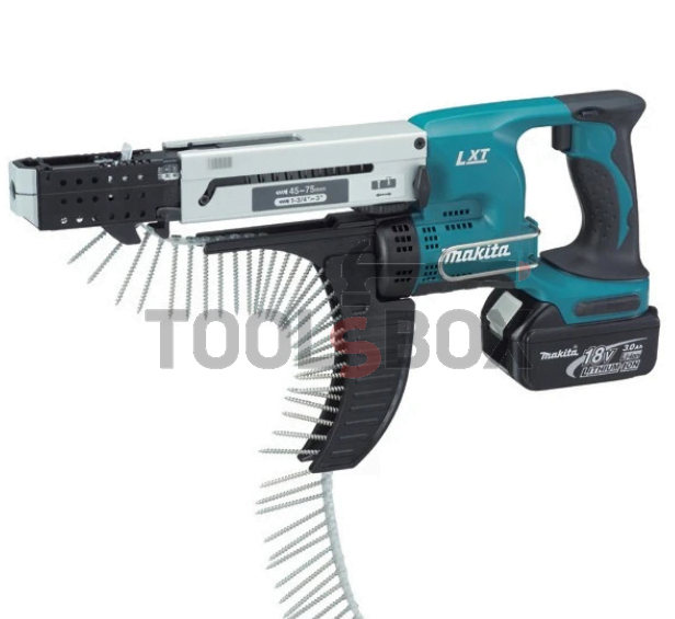 DFR750RFE е професионален автоматичен винтоверт. Автоматично устройство за подаване на винтове. Новият безшумен съединител осигурява по-висока ефективност на работа с директна трансмисия при реверс. Възможност за натискане на копчето за реверс с една ръка. Сгъваемият водач предпазва лентата с винтове от прегъване и осигурява по-лесно транспортиране на инструмента. Наличие на специално устройство за предотвратяване изместването на винтовете. Сгъваемият водач предпазва лентата с винтове от прегъване. Ергономичната ръкохватка с меко гумено покритие осигурява по-удобна работа и по-голям контрол Възможност за регулиране на ограничителя на дълбочината на завинтване в зависимост от различните видове винтове без използване на допълнителни инструменти. Прахозащитена конструкция. Доставя се само тяло.