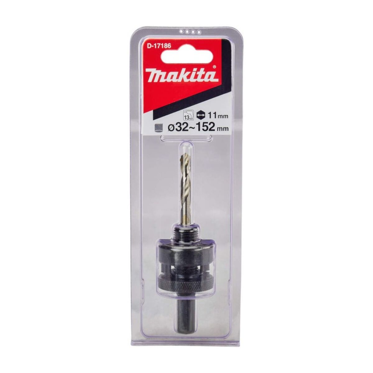 Адаптер Makita D-17186 е изработен от висококачествена легирана стомана, гарантирайки дълъг експлоатационен живот. Той има покритие от месинг и стомана и е подходящ за триони за дупки от 30 мм до 152 мм.