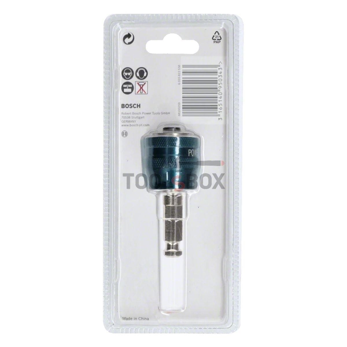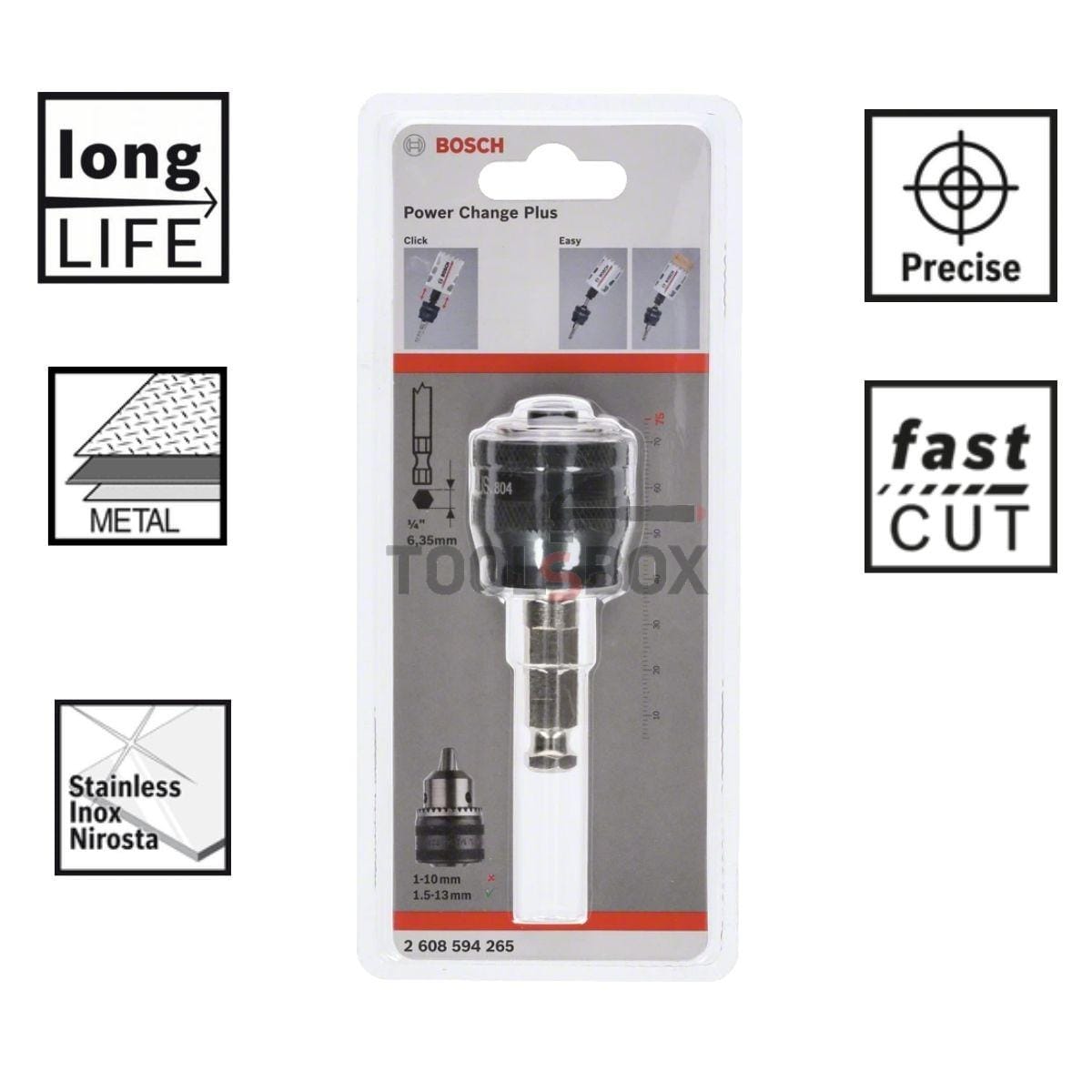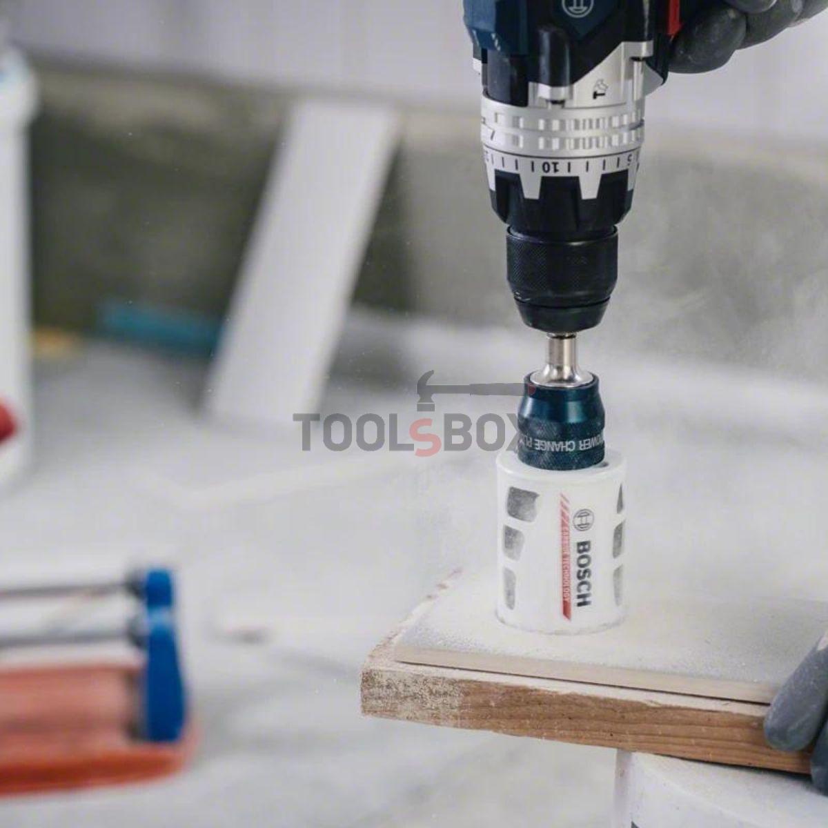 Адапторьт на BOSCH Power-Change за биметални боркорони е с диаметър от 11 мм. Доставя се с центриращо свредло от закалена легирана бързорежеща стомана. Подходящо за пробиване на дърво, пластмаса и метал. Захват шестостенна опашка. Свредлото е предназначено за Bosch Progressor за триони за дърво и метал с монтиране. Адаптерът е с 7/16 мм шестостенна дръжка. Оригиналният адаптер е изработен от висококачествени материали и ще издържи дълго време. Централната бормашина,прави началото на пробиване прецизно и точно. Адаптерът е много надежден и издръжлив уникалната система Power-Change Plus ви позволява бързо и лесно да сменяте резачката без да използвате ключ. Уникална безключова система за захващане. Подходящ за използване с всички кабелни и акумулаторни бормашини.