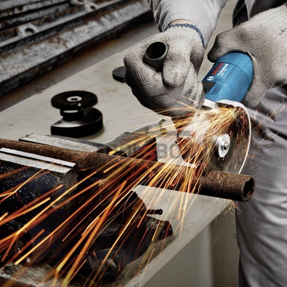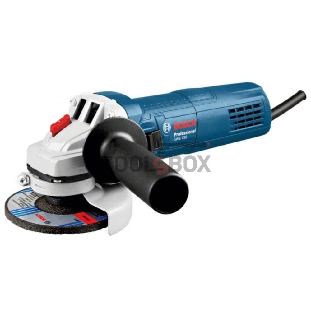 Електрически ъглошлайф Bosch GWS 750 115мм е професионален инструмент, който се използва за строителни и ремонтни дейности, шлайфане, почистване и рязане на метални конструкции. Оборудван с електродвигател 750W, който осигурява висок въртящ момент и отлични показатели. Ергономично тяло с лесно управление. Защита срещу повторно включване, предотвратява автоматичното включване на машината след прекъсване на тока. Подобрено охлаждане на мотора за продължителна работа. Защитният кожух на машината лесно се регулира и предпазва работещия от нараняване при евентуално счупване на диска. Допълнителната дръжка допринася за комфортната работа и може да се монтира от двете му страни. Здравият редуктор се завърта на 90°. Малката обиколка на ръкохватката позволява по-малко умора при продължителна работа