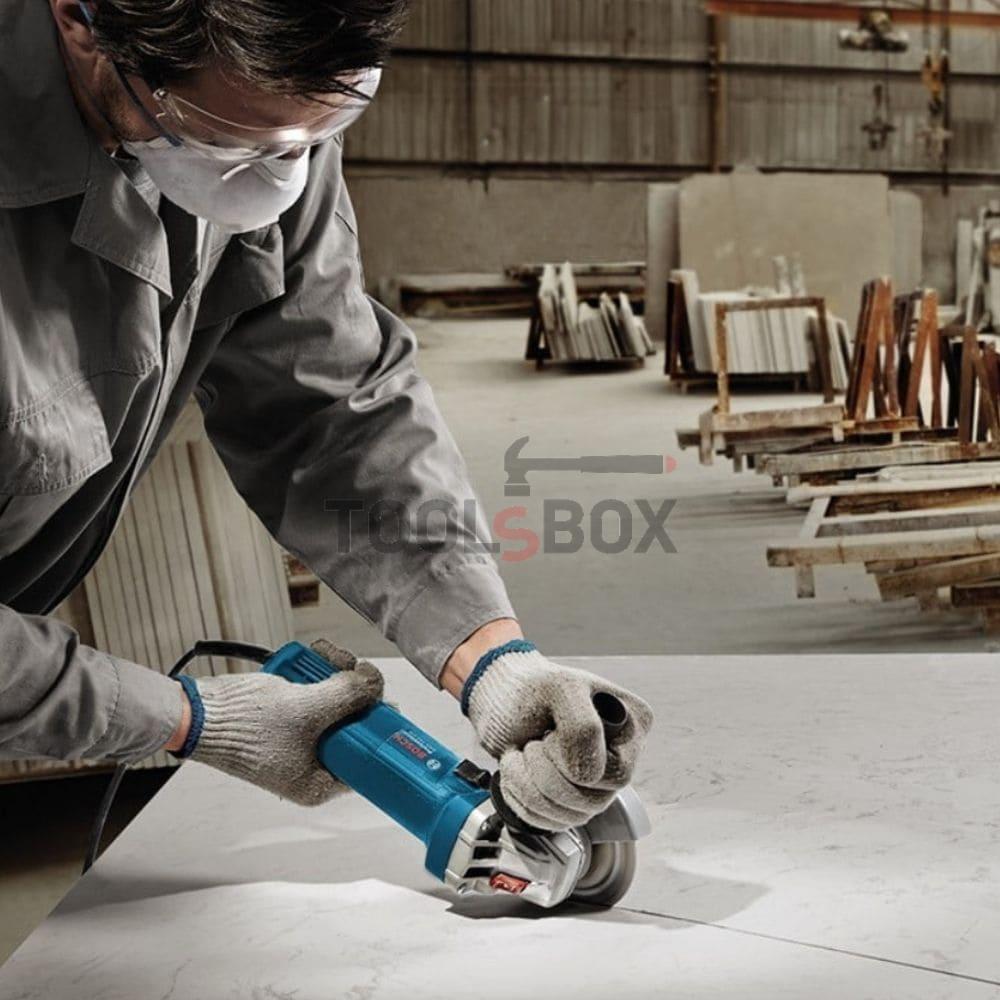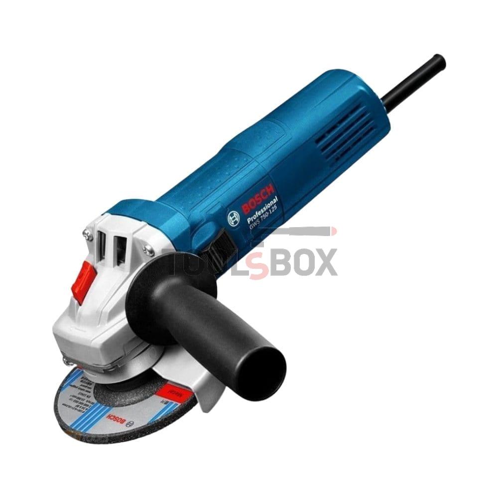 Електрически ъглошлайф Bosch GWS 750-125 Professional е професионален инструмент, който се използва за строителни и ремонтни дейности, шлайфане, почистване и рязане на метални конструкции. Оборудван с електродвигател 750W, който осигурява висок въртящ момент и отлични показатели. Ергономично тяло с лесно управление. Защита срещу повторно включване, предотвратява автоматичното включване на машината след прекъсване на тока. Подобрено охлаждане на мотора за продължителна работа. Защитният кожух на машината лесно се регулира и предпазва работещия от нараняване при евентуално счупване на диска. Допълнителната дръжка допринася за комфортната работа и може да се монтира от двете му страни. Здравият редуктор се завърта на 90°. Малката обиколка на ръкохватката позволява по-малко умора при продължителна работа