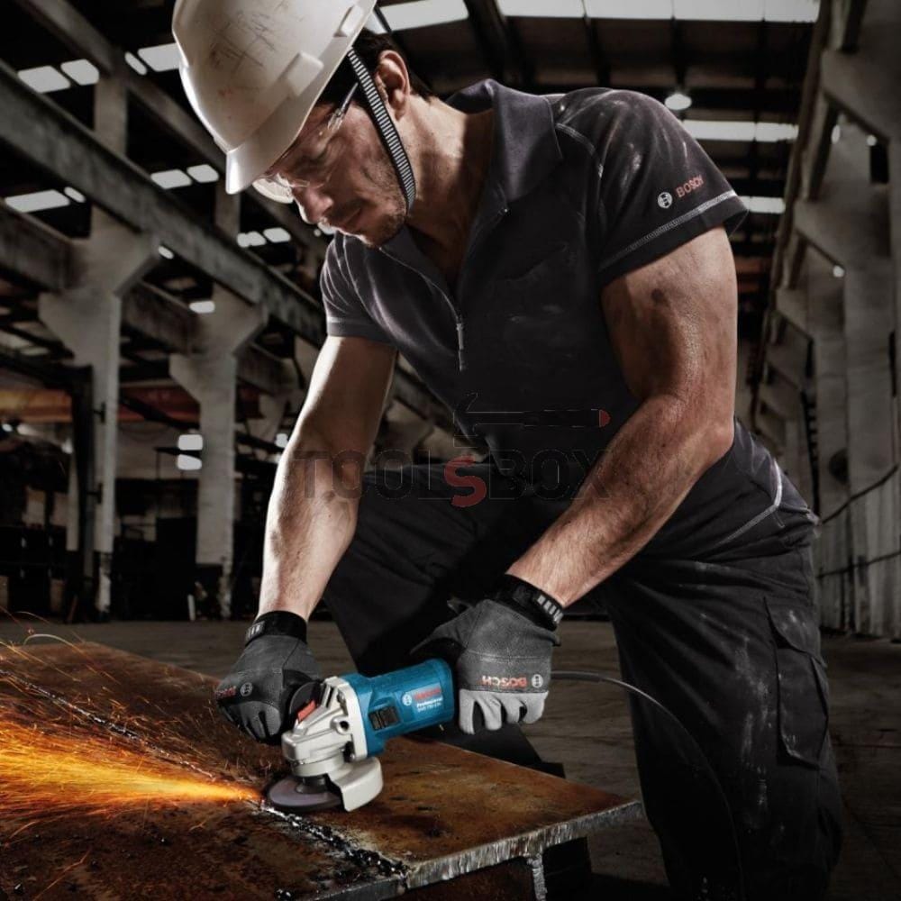 Електрическият ъглошлайф Bosch GWS 750 S Professional разполага с нов двигател с мощност 750 W, който осигурява регулируема скорост 2800-11 000 об./мин за шлайфане на различни материали. Работи с диск 125 мм с плавно стартиране. Благодарение на заключването на шпиндела консумативите се сменят удобно, безопасно и лесно. Моделът е оборудван с най-малкия по размери редуктор, което прави инструмента още по-удобен за работа с една ръка, както и применим в труднодостъпни места. Обновените въглеродни четки, оптимизираното охлаждане, прахоустойчивият двигател и защитата срещу неволно включване, здраво фиксираният предпазен щит правят инструмента безопасен за оператора. Мека ръкохватката с покритие прави работния процес още по-удобен.