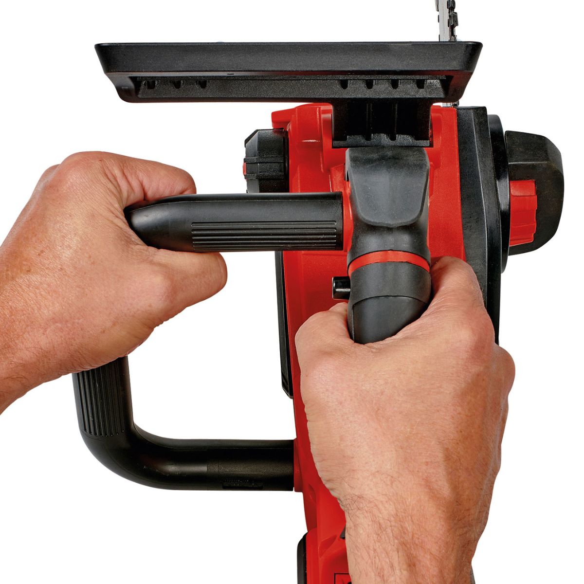 Акумулаторен верижен трион – резачка Einhell FORTEXXA 18/20 ТН предлага напрежение от 18 V и шина с дължина от 20 см. Със силно мощен безчетков двигател и висококачествена OREGON шина, тя е идеална за използване при различни дейности, свързани с обработка на дървесина. Устройството разполага с функция за автоматично смазване на веригата, като смяната й е лесна и удобна, без да се налага използването на други инструменти. За безопасност по време на работа е оборудвана с защита от откат, като има моментална спирачка на веригата, което осигурява сигурност и предпазва оператора. Ергономичната дръжка с мека ръкохватка допринася за допълнителен комфорт по време на употреба.