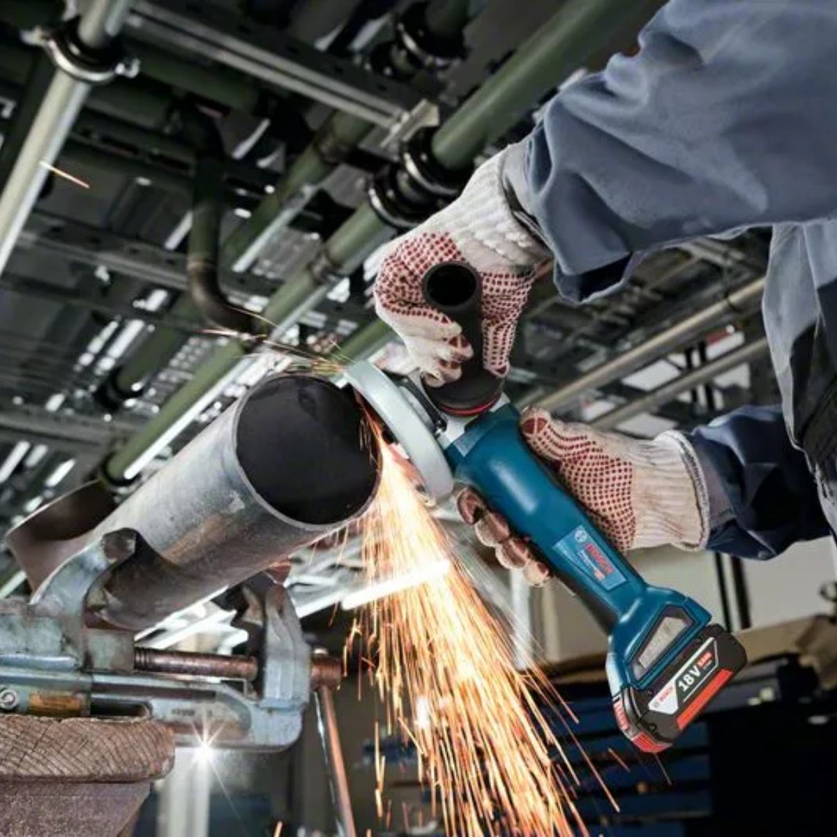 Акумулаторен ъглошлайф BOSCH GWX 18V-10 P е проектиран за използване с дискове с диаметър 125 мм и работи със скорост от 9000 оборота в минута. Той се захранва от батерия ProCORE 18 V, която осигурява надеждно захранване за продължителни работни цикли. Разполага с функция за защита срещу повторно пускане, която предотвратява автоматичното стартиране на инструмента след прекъсване на захранването. Снабден с безчетков двигател, който предоставя мощност равна на 1000 W на захранван от мрежата ъглошлайф. Този тип двигател не изисква техническо обслужване и осигурява по-малко износване и по-малко загуби от триене. Технологията Drop Control е вградена в инструмента и автоматично го изключва в случай на случайно изпускане на пода, като предпазва инструмента от повреди и предотвратява евентуални наранявания. За допълнителна защита на работещия, ъглошлайфът разполага и с технологията KickBack Control, която реагира на внезапни задържания и спира инструмента, за да предотврати задръствания или загуба на контрол. Смяната на консумативи е бърза и удобна благодарение на X-LOCK системата с щракване без инструмент.