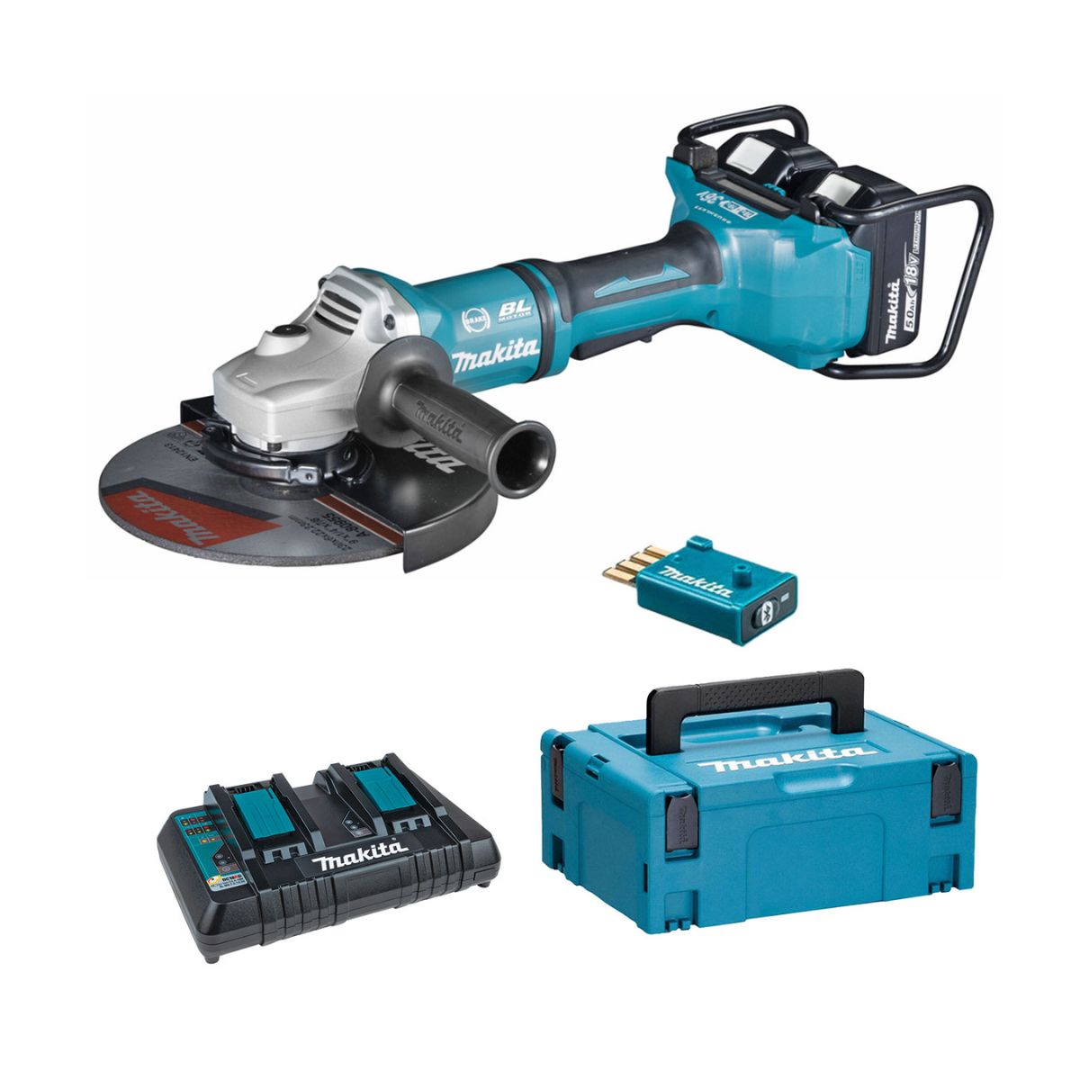 Акумулаторен ъглошлайф Makita DGA901T2U2 е мощен, компактен и лек инструмент, оборудван с безчетков двигател (BLDC), който осигурява висока производителност и дълъг живот на батерията. Благодарение на този тип двигател, инструментът не изисква техническа поддръжка. Ъглошлайфът разполага с ръкохватка с мека дръжка, която осигурява допълнителен комфорт при работа. Технологията за автоматично задвижване на въртящия момент (ADT) автоматично регулира работната скорост според натоварването, което осигурява по-голяма ефективност и контрол върху инструмента. Защитата против повторно включване предотвратява възможността от злополуки и осигурява по-голяма безопасност при работа. Съвместим с AWS (безжична система за автоматично стартиране), която позволява безжично свързване с прахосмукачка за по-чисто рсботно място. С функцията за бавно стартиране (Soft start), машината стартира постепенно и плавно, което помага за по-голям контрол, а технологията за активно спиране на обратна връзка (AFT) защитава потребителя, като спира въртенето на инструмента, ако скоростта му значително намалее. Индикаторът за състоянието на акумулаторната батерия позволява на потребителя да следи нивото на заряд, за да се осигури непрекъсната работа без прекъсвания.