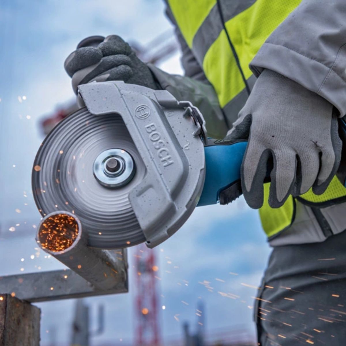 Акумулаторен ъглошлайф BOSCH GWS 18V-180 P PROFESSIONAL с 180 мм диск и компактна глава на редуктора предлага същата дълбочина на рязане като по-големите 230 мм ъглошлайфове, но с до 35% по-малко тегло. Технологията BITURBO Brushless осигурява достатъчно мощност за бързо и ефективно рязане в различни материали. PROtection превключвателят осигурява незабавно изключване на инструмента при освобождаване на превключвателя, а функцията KickBack Control предотвратява неочакван откат. Интелигентната спирачна система съкращава времето за спиране значително, осигурявайки по-голяма безопасност при работа. Ъглошлайфът GWS 18V-180 P Professional може да реже различни материали като метал, бетон, тухли и плочки. Той е съвместим с всички акумулаторни батерии и зарядни устройства от 18 V системата на Bosch Professional, както и с всички от AMPShare 18 V. За постигане на максимална мощност се препоръчва използването на батерии ProCORE18V с капацитет от 5,5 Ah или повече. Допълнителни функции на устройството са защита срещу повторно включване, плавен старт и странична ръкохватка с Vibration Control за по-голям комфорт при работа.