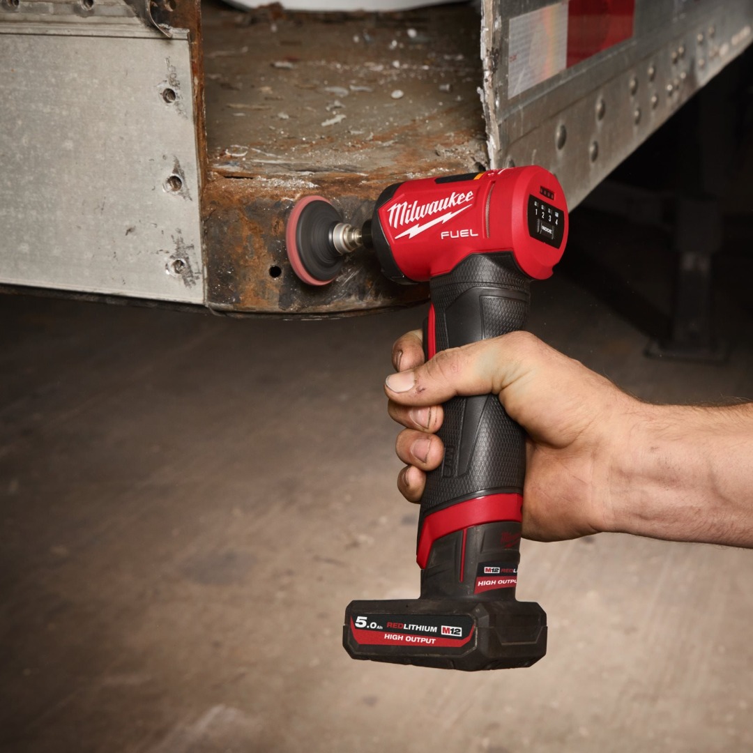 Акумулаторен ъглов шлайф Milwaukee M12FDGA2-0 работи с 12 V батерия и е оборудван с диск с диаметър 76 мм, осигуряващ максимална дълбочина на рязане 50 мм. Инструментът разполага с четири степени на скорост и променлив електронен спусък, които позволяват оптимален контрол при работа с различни материали, включително неръждаема стомана. Съвместим е с аксесоари с диаметър до 76 мм и се доставя с универсални цанги 6 и 8 мм. Функцията за заключване на шпиндела улеснява бързата смяна на консумативи, а двойният предпазен бутон предотвратява неволно стартиране. Вграденото LED осветление подобрява видимостта в работната зона, което прави модела удобен и безопасен за използване дори в слабо осветени условия. Инструментът е част от системата Milwaukee M12 и е подходящ за рязане, шлайфане и обработка на детайли в тесни пространства.