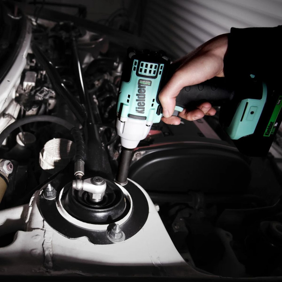 Акумулаторен гайковерт Kielder KWT-002-17 е с 3/8“ квадратно задвижване, което ви позволява да монтирате тънки гнезда с диаметър от 6 mm. Идеален е за автомобилни приложения, особено за закрепвания в труднодостъпни места. Задвижван от плавен цифров безчетков мотор и работи с високотехнологични литиево-йонни батерии Samsung, което осигурява надеждна и висока производителност. 3/8″ квадратно задвижване със сачмен лагер за гладко движение. Има променлив превключвател, който осигурява оптимален контрол на скоростта при затягане. Гаечният ключ разполага с ергономична мека ръкохватка за комфорт при работа. Също така, притежава електронна спирачна система, която осигурява почти моментална спирачна мощност. Има индикатор за нивото на зареждане на батерията и е съвместим с взаимозаменяемата батерийна система KielderWT® ‘TYPE18’.