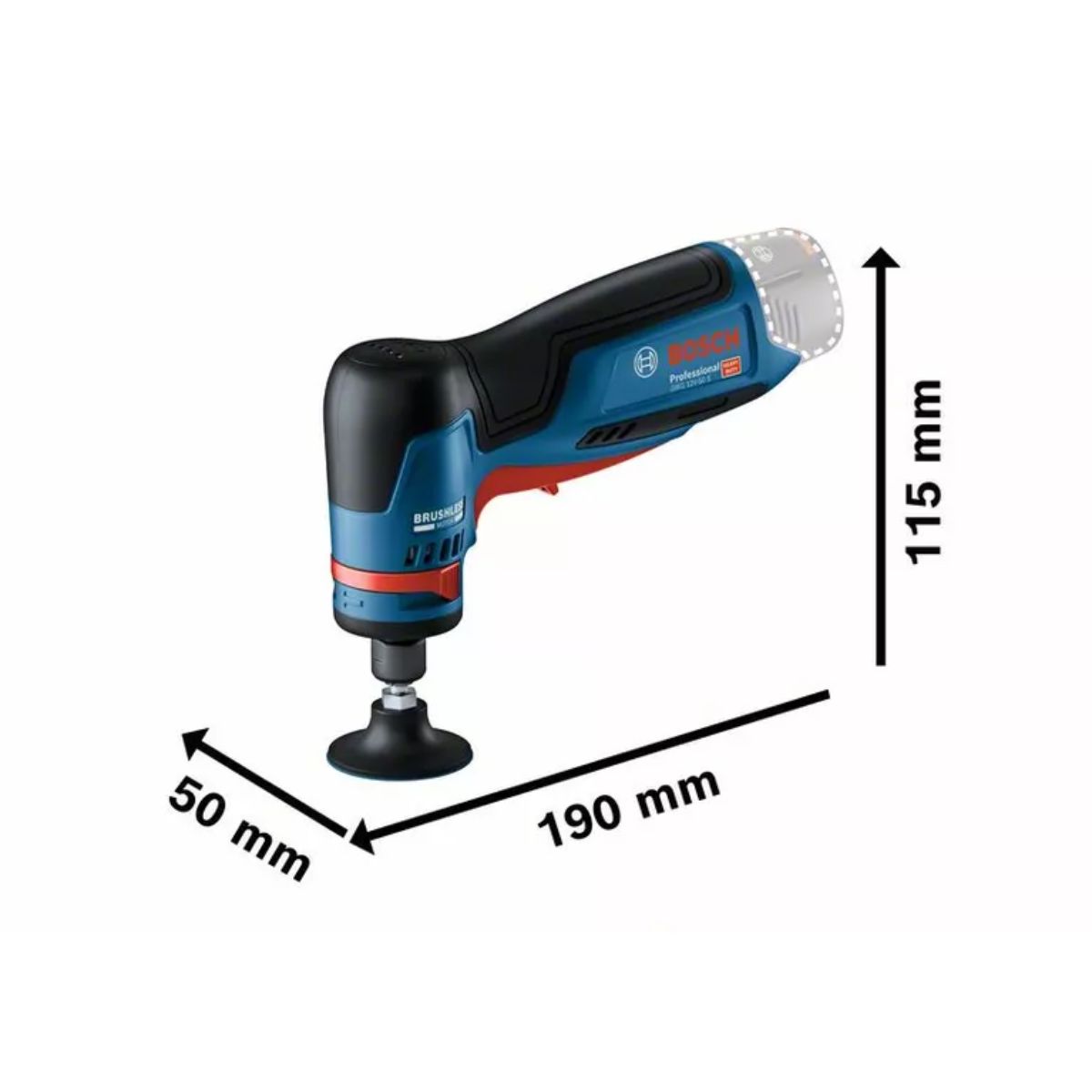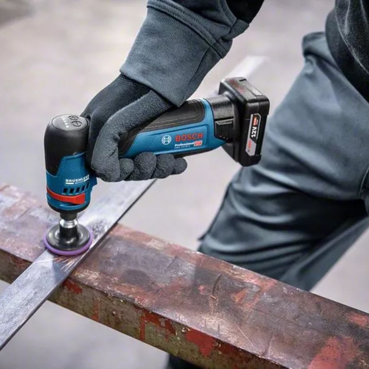 Акумулаторен ротационен инструмент за шлайфане Bosch GWG 12V-50 S Professional е с напрежение от 12 V и е съвместима с различни 50 мм дискове за грубо шлайфане, които са налични на пазара с 6 мм и 8 мм цанги. Оборудвана с мощен безчетков мотор, който осигурява висока производителност и голям въртящ момент. Тя е изключително подходяща за грубо шлайфане, почистване на мустаци, подготовка на повърхности и отстраняване на заваръчни шевове и заварки, особено върху метал. Машината е изключително лека и компактна с ергономична конструкция. Ръкохватката с малък размер осигурява работа без умора, дори в тесни пространства. Превключвателят тип спусък с променливи обороти на акумулаторната полирмашина и 5 режима на оборотите предоставят възможност за идеален контрол върху оборотите за различни приложения и постигане на оптимални резултати. Разполага с иновативен потребителски интерфейс с индикация за оборотите и заряда на акумулаторната батерия.