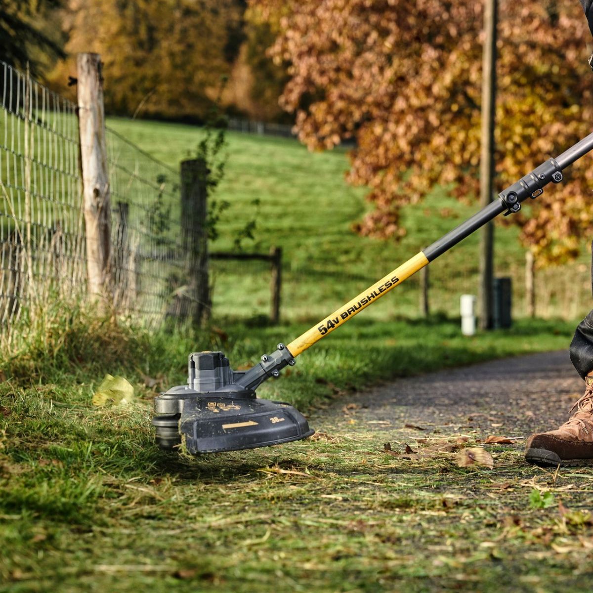 Акумулаторен тример DeWALT DCM571X1 представлява впечатляващо решение за поддръжка на градината и разполага с двойно напрежение от 54V и 18V, като позволява на потребителя да използва батерии от серията XR FLEXVOLT на DeWALT. Машината е оборудвана с мощен безчетков двигател, който осигурява висока производителност и ефективност при работа, а функцията за регулиране на оборотите позволява лесен контрол според нуждит на оператора. Металният корпус на тримера удължава експлоатационния му живот, осигурявайки издръжливост и устойчивост при работа в различни условия. С батерийна капацитет 3 Ah или 9 Ah, този тример предоставя издръжливост и продължителност на работа. Косенето става лесно и бързо благодарение на ширината на косене от 38 см, която позволява да се обхванат по-големи площи с по-малко усилия. Комплектът включва корда с дължина 7.5 м и диаметър 2 мм, която осигурява оптимална дължина и здравина за косене на трева и по-тънки растения. Батерията на ниска скорост позволява работа около 54 минути, докато на висока скорост може да работи около 44 минути