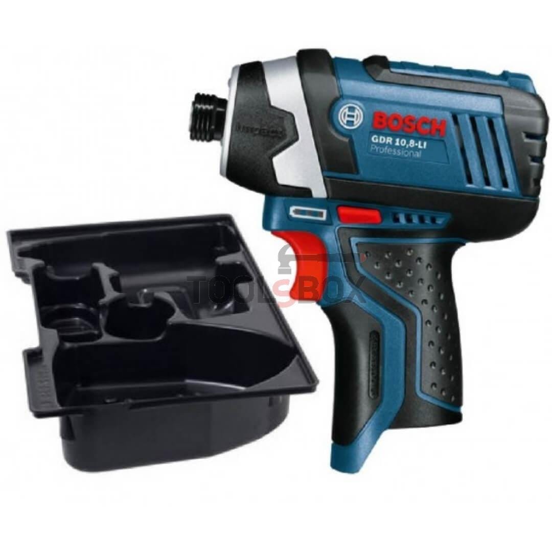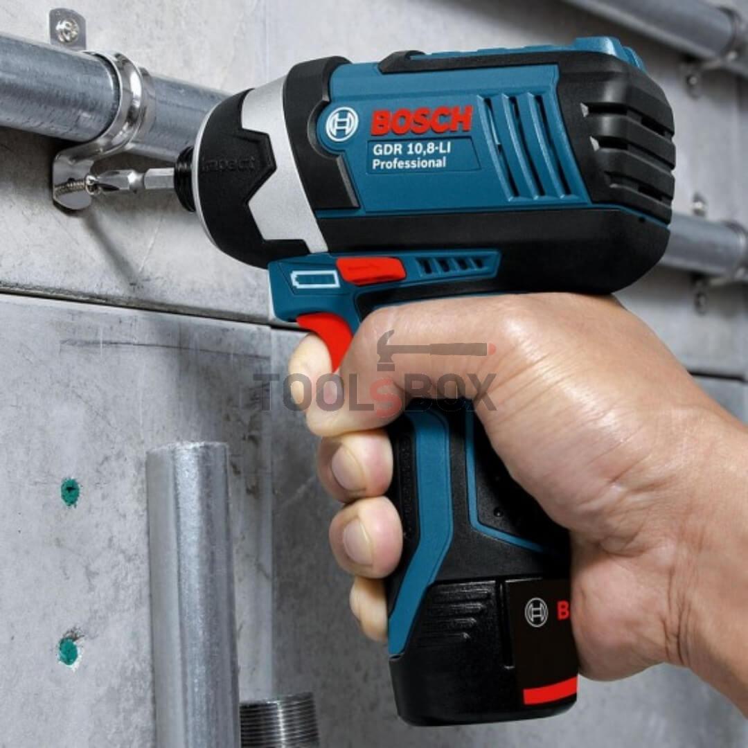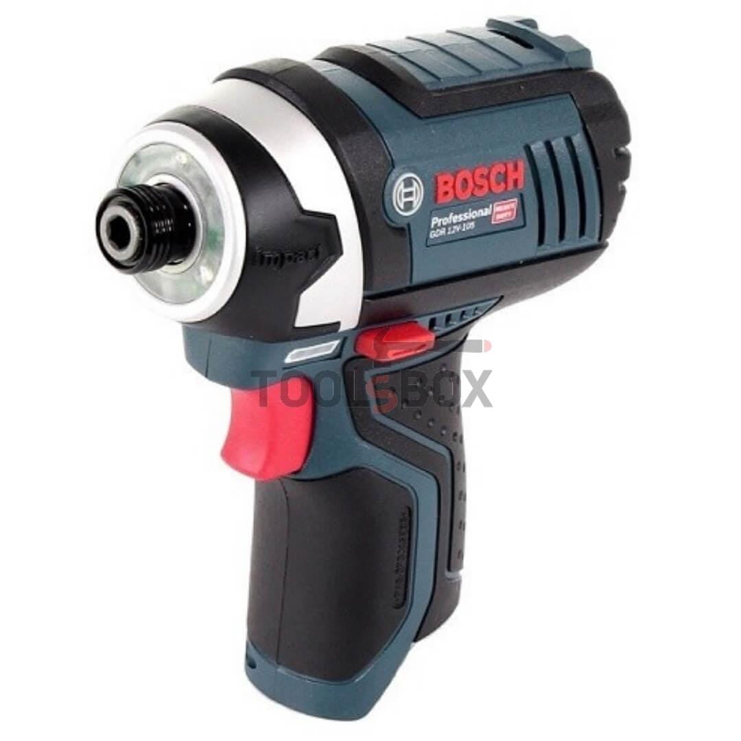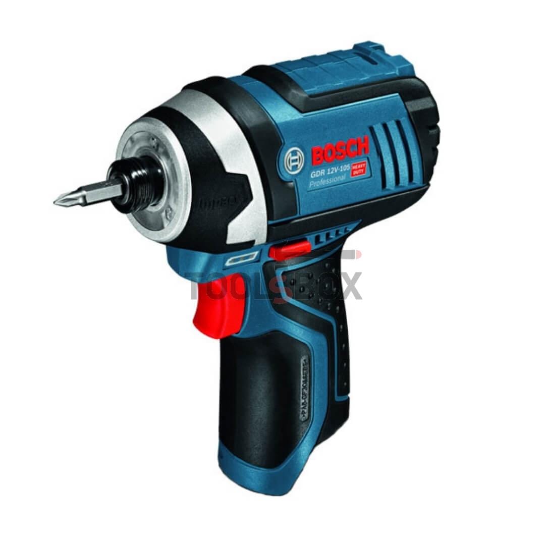 Акумулаторения ударен гайковерт Bosch GDR 12V-105 Professional е най-компактният ударен гайковерт с професионална производителност. Голям въртящ момент 105 Nm с корпус с джобен размер, който покрива 80 % от приложенията на стандартните по размер акумулаторни ударни гайковерти. Най-късата конструкция в неговия клас (само 137 mm) и тегло само 0,96 kg за лесно управление. Най-високи обороти в неговия клас за забележителен напредък в работата.