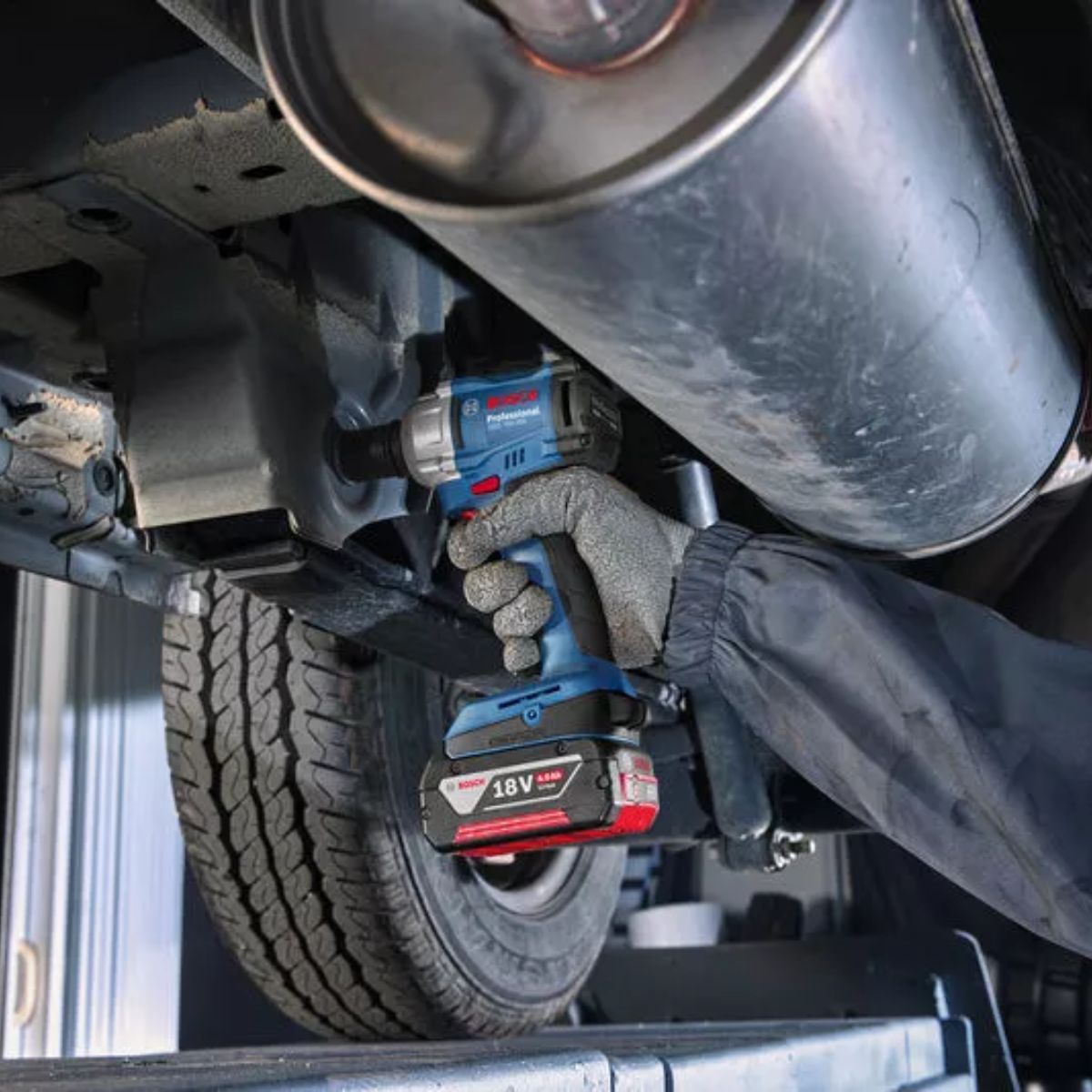 Акумулаторен ударен гайковерт Bosch GDS 18V-350 е оборудван с безчетков мотор за по-дълъг експлоатационен живот и по-добра производителност. Компактният му размер с дължина на главата само 131 mm и тънката ръкохватка с меко покритие осигуряват удобство и контрол, дори при работа в тесни пространства. С три нива на въртящ момент, този гайковерт позволява лесно превключване между 85 Nm, 200 Nm и максималните 350 Nm, което го прави идеален за работа с различни размери болтове, включително ръждясали или трудни за разхлабване крепежни елементи. Оптимизираният контрол на мощността предотвратява повреда на материалите и осигурява ефективно затягане. Подходящ за професионалисти в металната индустрия, ОВК инсталации, изграждане на скелета и автомобилни ремонти, Bosch GDS 18V-350 гарантира надеждност и прецизност при затягане на болтове и закрепване на машинни винтове. Съчетавайки мощност, удобство и издръжливост, този инструмент е отличен избор за всяка работна среда.
