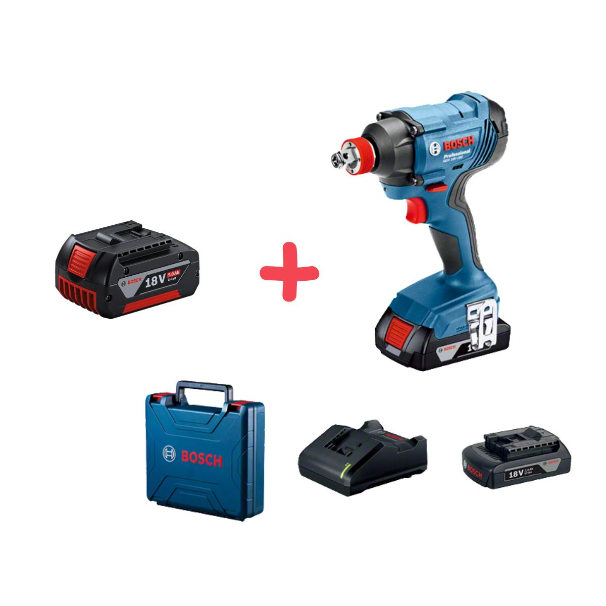 Акумулаторен ударен гайковерт Bosch GDX 180-LI е единственият инструмент на пазара, който комбинира двоен държач за битове, осигурявайки изключителна гъвкавост при работа. Той позволява завинтване на винтове, болтове и дори пробиване – всичко това с един и същ уред. Оборудван е както с 1/4″ шестостенен държач за стандартни битове, така и с 1/2″ квадратен държач за накрайници, подходящи за болтове, което го прави изключително практичен и универсален за различни приложения. Инструментът предлага висок въртящ момент, голяма честота на ударите и бърза скорост на въртене, което гарантира бързо и ефективно извършване на всяка задача. Издръжливата му конструкция включва здрав редуктор и мотор с отворена конструкция, както и система за защита на акумулаторните клетки, която удължава живота на инструмента и го прави надежден дори при тежки работни условия. BOSCH GDX 180 е идеалният избор за професионалисти, търсещи мощност, издръжливост и функционалност в едно устройство.