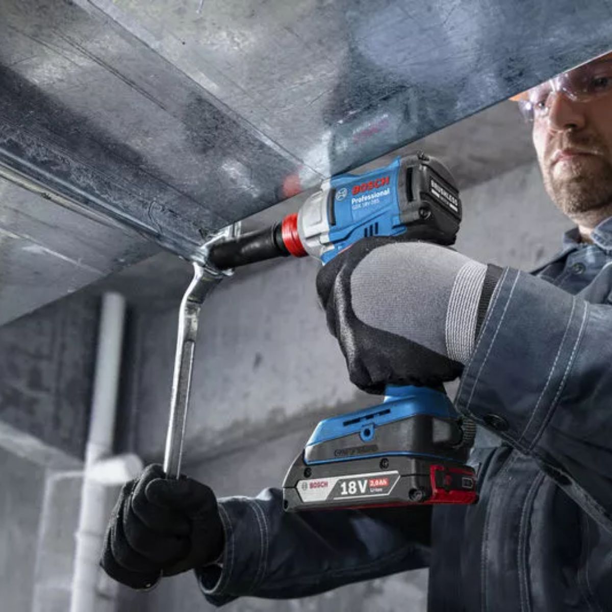 Акумулаторен ударен гайковерт Bosch GDX 18V-285 е мощен и многофункционален акумулаторен гайковерт, който съчетава ударно-пробивен винтоверт и ударен гайковерт в един инструмент. С напрежение 18 V и максимален въртящ момент от 285 Nm, той осигурява висока производителност и ефективност при различни приложения. Този модел разполага с уникален държач на битове 2 в 1, който включва ¼“ вътрешен шестостен за стандартни битове и ½“ квадратно задвижвано звено за гайковертни вложки, което го прави изключително гъвкав и удобен за работа. С две налични скорости, инструментът позволява прецизно регулиране на мощността и оборотите спрямо специфичните задачи. GDX 18V-285 е подходящ за затягане на болтове до M18, както и за завинтване на самонарезни винтове с диаметри 4.2 мм и 4.8 мм в ламарина. Може да се използва и за завинтване в дърво с винтове с диаметри 4, 5 и 8 мм, както и с винтове с квадратна глава M6, M8 и M10. Съчетавайки висока мощност, прецизен контрол и иновативен дизайн, този акумулаторен гайковерт е идеален избор за професионалисти, които търсят надежден и универсален инструмент за разнообразни монтажни и строителни дейности.