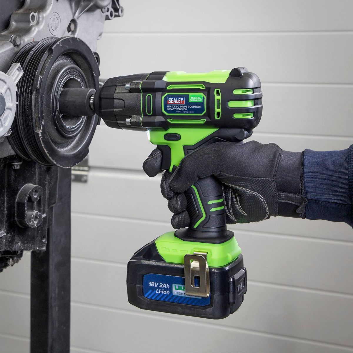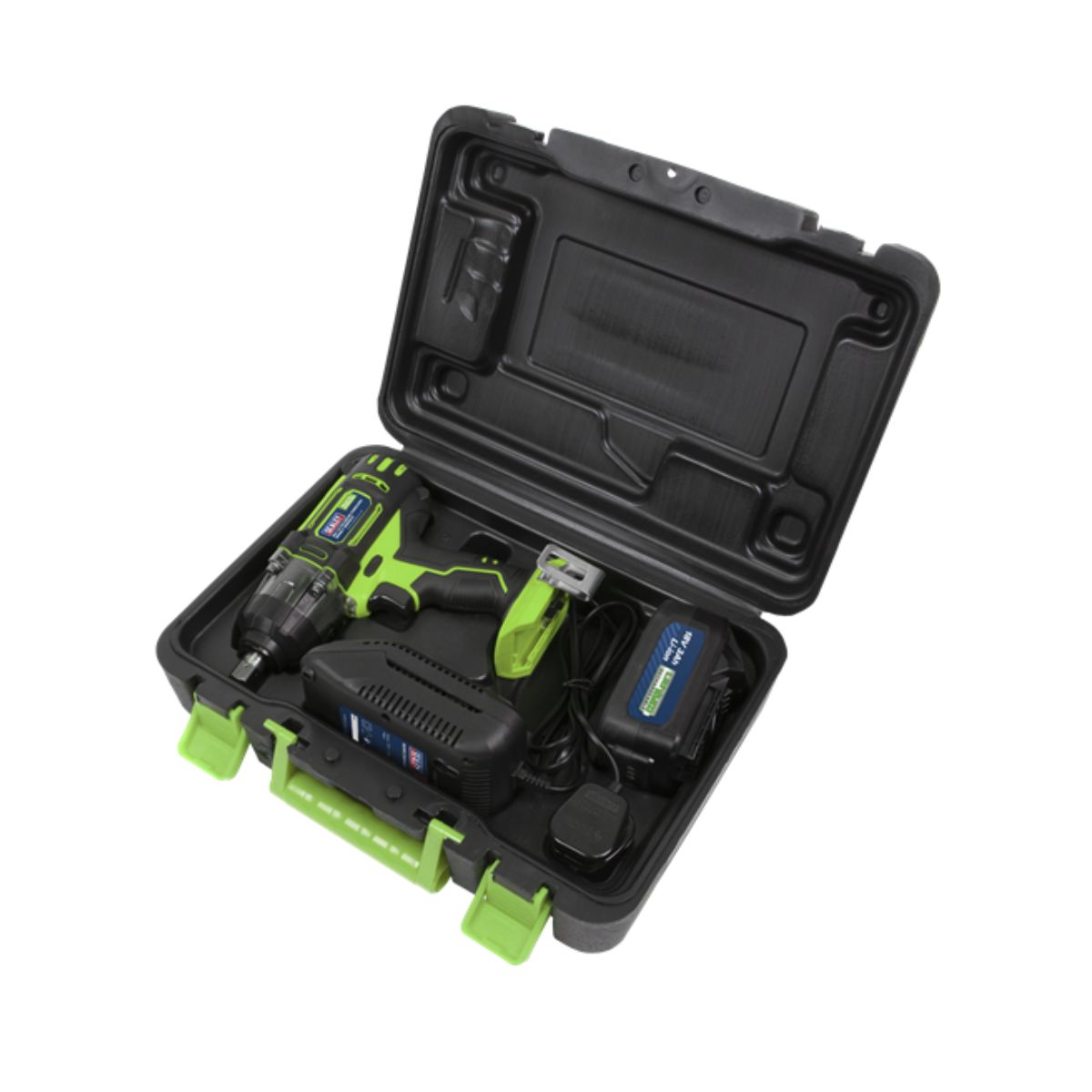 Акумулаторен ударен гайковерт Sealey CP400LIHV предлага впечатляваща комбинация от мощност, издръжливост и удобство при работа. Спусъкът с променлива скорост осигурява по-голям контрол върху инструмента, докато скоростната кутия от лят алуминий и гуменият капак на редуктора добавят издръжливост и надеждност. С удобната гумирана ръкохватка и двойното инжекционно тяло този ударен гайковерт предлага комфорт при работа, дори при продължително използване. Функцията за електрическа спирачка гарантира безопасността на оператора по време на работа. Термичната защита от претоварване осигурява безопасност и предпазва инструмента от повреди. Максималният въртящ момент до 550 Nm (406 lb.ft), този гайковерт се справя лесно с най-трудните задачи. Изцяло металната зъбна конструкция осигурява максимална издръжливост и производителност, а LED работната светлина осветява работната зона за по-голяма видимост и контрол.