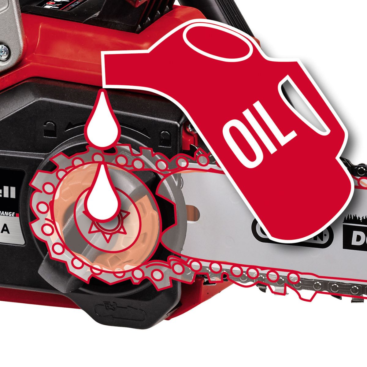 Акумулаторен верижен трион Einhell FORTEXXA 18/30 е част от серията Power X-Change и е снабден с безчетков мотор, предоставяйки повече мощност и по-дълъг експлоатационен живот в сравнение с традиционните мотори с въглеродни четки. Осигурявайки висококачествена верига и шина от OREGON, трионът предоставя прецизно и ефикасно рязане. Скоростта може да се регулира в зависимост от приложението, а потребителят има възможност да избира между пълна мощност (8.9 м/с) и еко режим (6.0 м/с). За допълнителна безопасност, трионът е оборудван с защита от откат с незабавна спирачка. Смяната и обтягането на веригата са лесни и не изискват инструменти. Ергономичната дръжка с меко покритие осигурява удобство при работа, а здравият метален ограничител и големият отвор за пълнене на масло подчертават устойчивостта и удобството при употреба. С допълнителни функции като автоматично смазване на веригата допринасят за удобството на потребителя. За оптимална производителност се препоръчва използването на батерия с капацитет 4.0 Ah и по-голям.