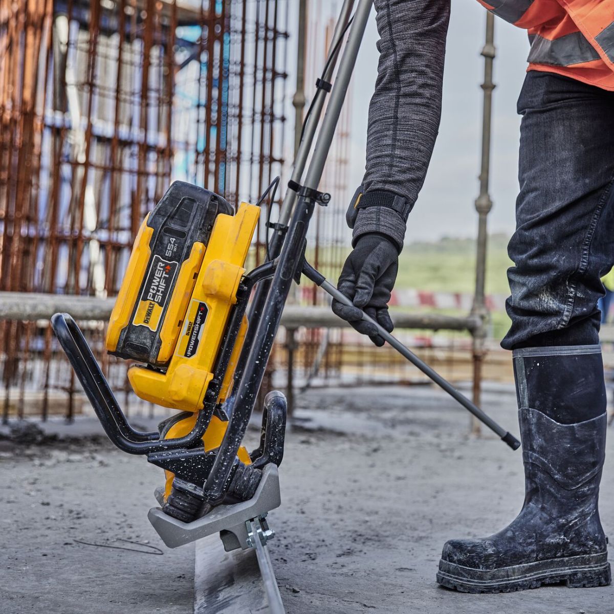 Акумулаторен вибромастар DeWALT DCPS330N е мощен и надежден и работи с батерия 554 Wh от системата POWERSHIFT™, осигуряваща производителност, съпоставима с бензинови машини. Съвместим с всички стандартни L-образни и кутиевидни греди (продават се отделно). Регулируеми дръжки във всички посоки и регулируема височина за максимална ергономичност. Вграденa стойка за защита от падане в пресен бетон, спусък с променлива скорост и функция за заключване. Осигурено място за съхранение на шестограми и удобна дръжка за пренасяне.