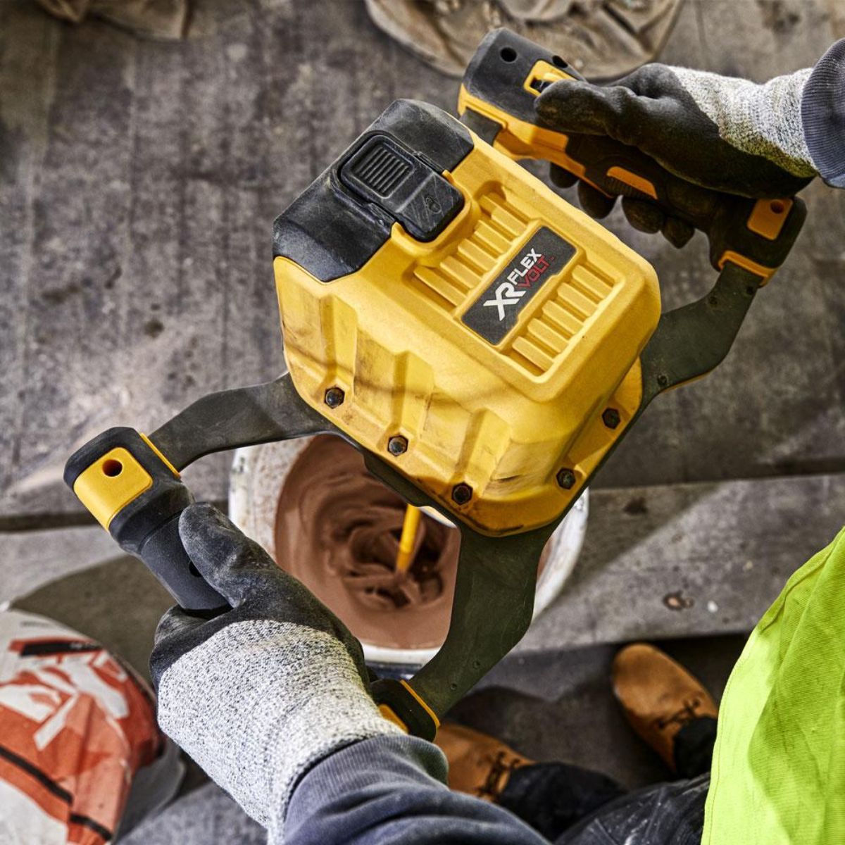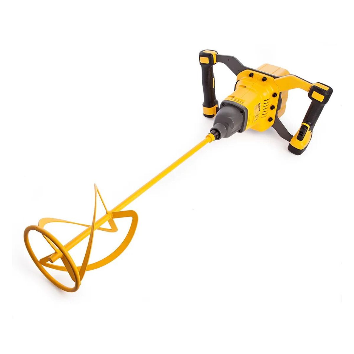 Акумулаторна бъркалка за смеси DeWALT е с изключително здрава и издръжлива метална бъркалка. Разполага с 5 степенно регулиране на оборотите и захват M14, който позволява лесна смяна на различни бъркалки. Ергономичната гумирана ръкохватка оптимален ъгъл на наклон помагат на оператора за безупречната работа, без умора. Предпазен превключвател с механизъм за деблокиране. Мощен безчетков мотор DeWalt 54V осигурява невероятна надеждност и удължено време на работа, с ефективна изцяло метална едноскоростна механична трансмисия с електронно променлива скорост.