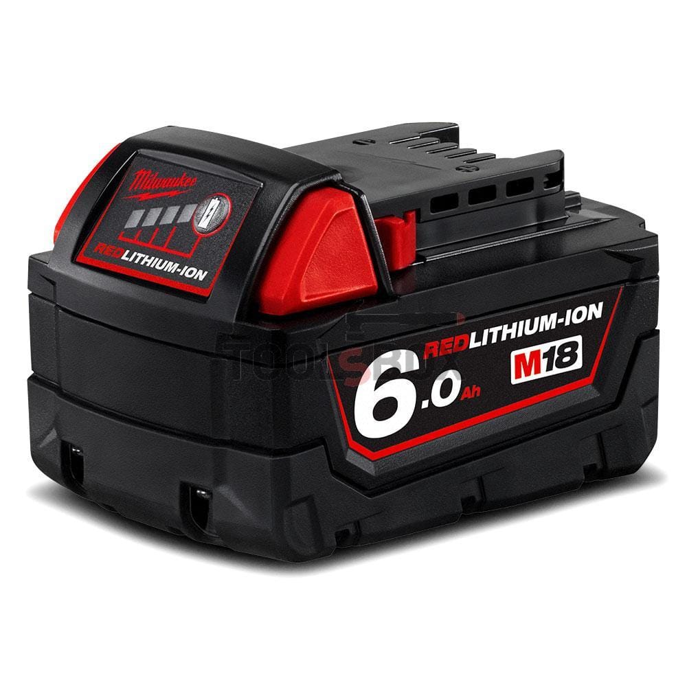 Milwaukee M18 B6 е литиево-йонна акумулаторна батерия. Осигурява до 65% повече време на работа, до 20% повече мощност и до 2-пъти повече цикли на зареждане в сравнение с други. Li-Ion технологии. Интелигентната система REDLITHIUM-ION™ защитава батерията от претоварване. Индивидуалния мониторинг на елементите оптимизира времето на заряда и разряда и осигурява голяма дълготрайност. Противоударния корпус защитава батерията от вибрации и удари при падане. Водоотвеждащите канали във вътрешността на батерията предпазват електрониката от влага. Батериите REDLITHIUM може да работят при температури до -20°С.