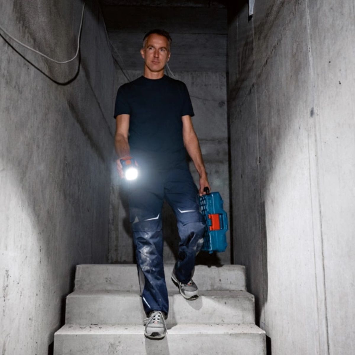 Акумулаторна лампа BOSCH GLI 18V-800 PROFESSIONAL предоставя отлично осветление на работната зона. С 3 нива на яркост, които могат да се регулират до 800 lm, 20 LED светодиода осигуряват ярка и равномерна светлина. Компактният дизайн на лампата и силният магнит и металната кука предлагат максимална универсалност при монтаж на лампата на различни повърхности. Иновативният сгъваем механизъм със завъртане на 360° и наклоняване на главата на лампата на 180° позволява лесно насочване на светлината във всеки ъгъл, осигурявайки оптимално осветление на работната зона. Управлението с един бутон я прави лесна за използване, като потребителят може бързо и лесно да променя яркостта на светлината според нуждите си. GLI 18V-800 Professional е идеална за осветяване на малки и средни работни зони или ограничени пространства. Тя е подходяща за електротехници, водопроводчици и други професионалисти, които имат нужда от ярка и надеждна работна лампа. Работната лампа е съвместима с всички 18 V акумулаторни батерии и зарядни устройства от AMPShare, включително всички акумулаторни батерии и зарядни устройства от 18 V системата на Bosch Professional.