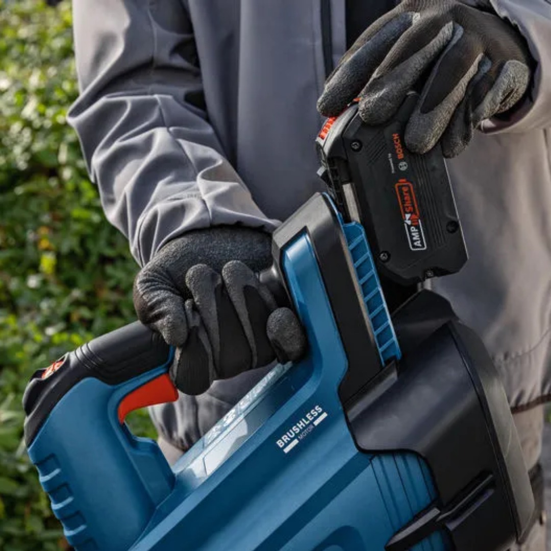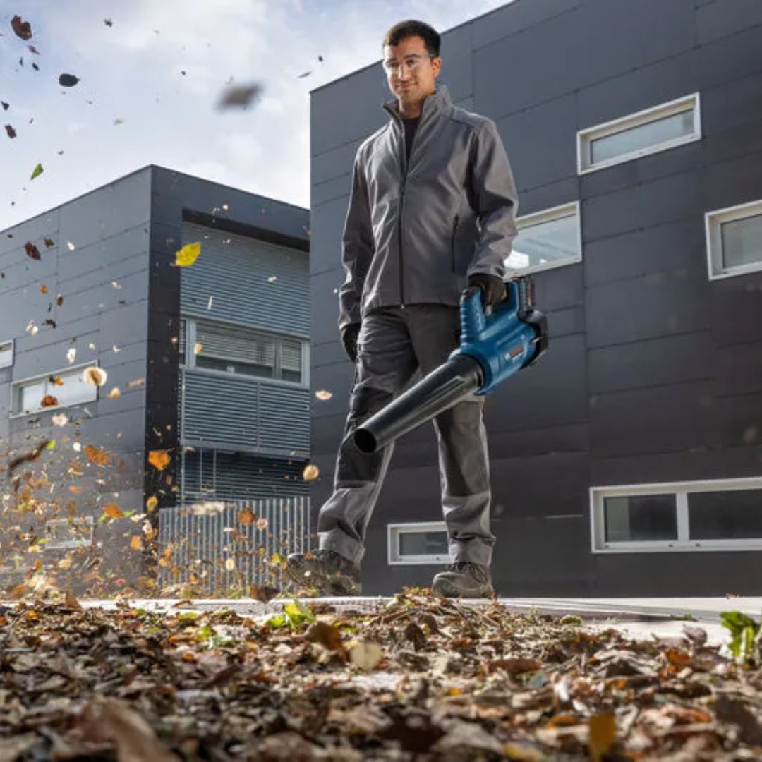 Акумулаторна метла Bosch Professional GBL 18V-750 е предназначена за бързо и контролирано почистване на листа, прах и леки отпадъци на открито. Моделът работи с безчетков мотор и аксиален вентилатор, като осигурява висок въздушен поток до 780 m³/h и скорост на въздуха до 198 km/h при използване с батерия ProCORE18V с капацитет минимум 5,5 Ah. Регулирането на оборотите позволява по-добро съобразяване на мощността, шума и времето за работа според конкретната задача.