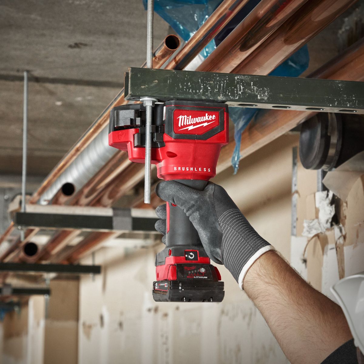Акумулаторна ножица за рязане на шпилки Milwaukee M18 BLTRC-0X е с мощен безчетков мотор, който осигурява на потребителя мощността, необходима за рязане на различни размери резбовани пръти. Резачката е в състояние да реже M6, M8, M10 и M12 мека стомана или M6, M8 и M10 неръждаема стоманена резба. Достига до 300 срязвания с едно зареждане на батерия 2,0Ah. Предлага лесно регулиране на размера на прътите за максимален контрол по време на работа. Иновативен и балансиран дизайн, осигуряващ максимална прецизност и позволява лесна работа в труднодостъпни зони. Резачката автоматично отваря матриците след завършване на рязането. Това позволява на потребителя да извършва бързи повтарящи се срезове без необходимостта да отваря и затваря инструмента ръчно, осигурявайки по-голяма ефективност и продължителност на работата. С ергономична гумирана ръкохватка, позволяваща лесна работа с една ръка. Инструментът е проектиран да осигури възможност за рязане на къси парчета с минимална дължина от 3,8 см. Това предоставя гъвкавост при работа с по-малки или специфични по размер пръти.