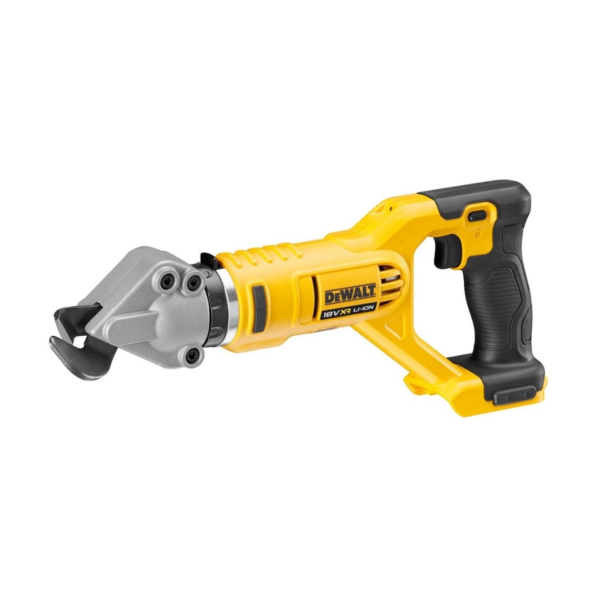 Акумулаторна ножица за ламарина DeWALT DCS496N е проектирана за бързо и прецизно рязане на метални листове, включително гофрирани повърхности. Работи с регулируема скорост до 2450 хода/мин и има глава, въртяща се на 360° за максимална маневреност, като изместената конструкция позволява рязане с минимален радиус 25,4 мм. Реже мека ламарина до 1,3 мм и неръждаема стомана до 1,0 мм. Оборудвана е с LED осветление за по-добра видимост.