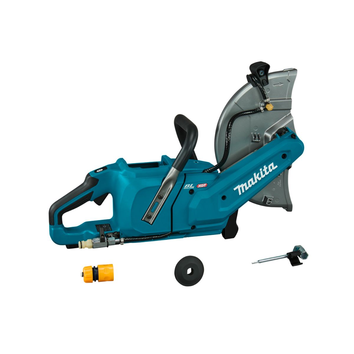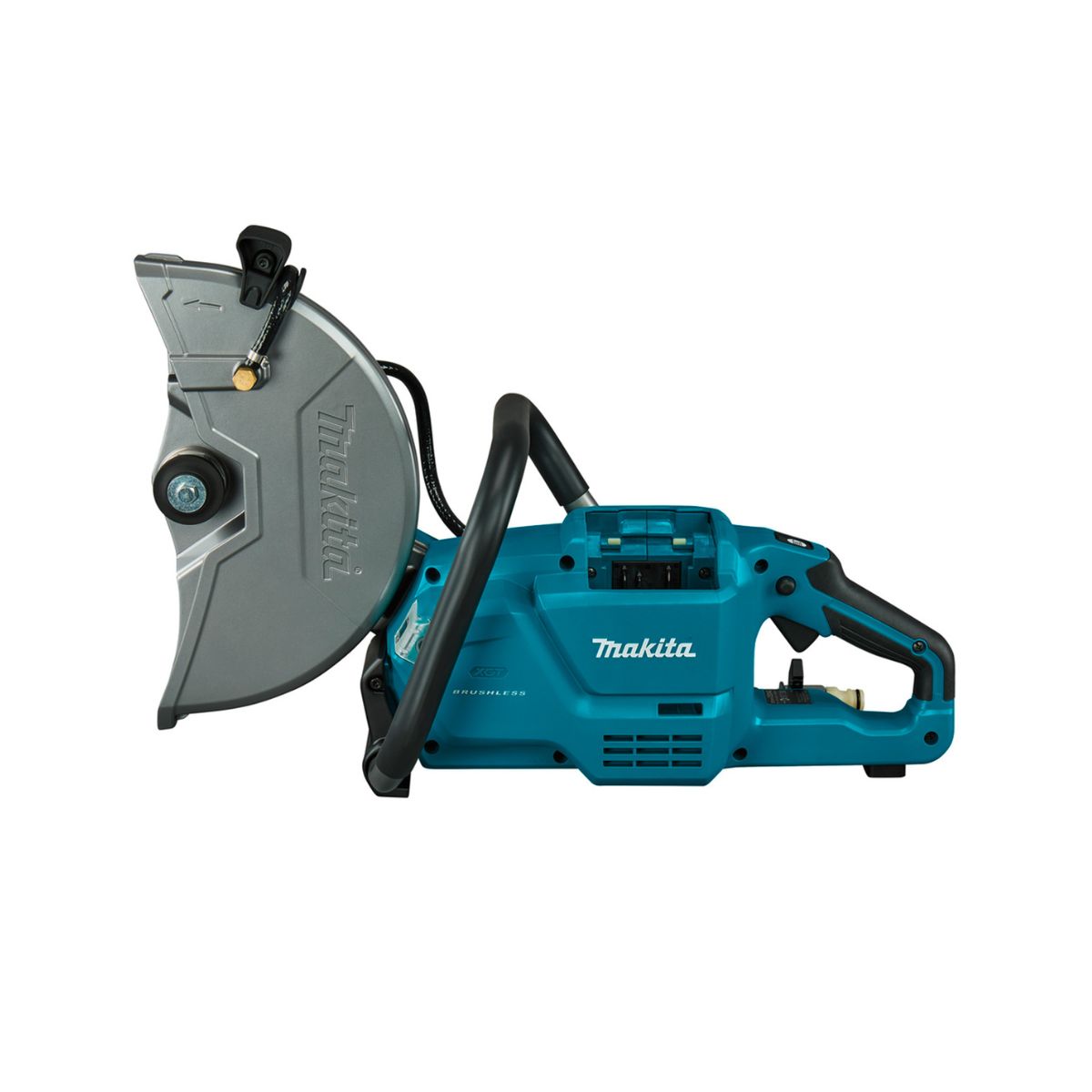 Акумулаторна отрезна машина Makita CE004GZ е мощен безжичен инструмент от серията XGT 40V Max, създаден за професионалисти и майстори, които искат да работят без кабели, но с пълна мощност. Този трион реже метал до 111 милиметра дълбочина и камък или бетон до 121 милиметра, когато използвате диамантен диск, което го прави подходящ за всякакви строителни и ремонтни работи. По-голямата дълбочина при рязане на твърди материали е възможна благодарение на специален по-малък фланец, който работи само с диамантени дискове. Защитата eXtreme Protection Technology (XPT) пази триона от прах и влага, така че можете да работите навън дори при лошо време. Функцията за плавен старт помага да започнете рязането гладко, без да дърпа инструмента, което прави работата по-лесна и по-точна. За вашата безопасност трионът има електронна спирачка, която спира диска много бързо след като пуснете копчето, така че да работите спокойно и да спестите време между отделните срезове.