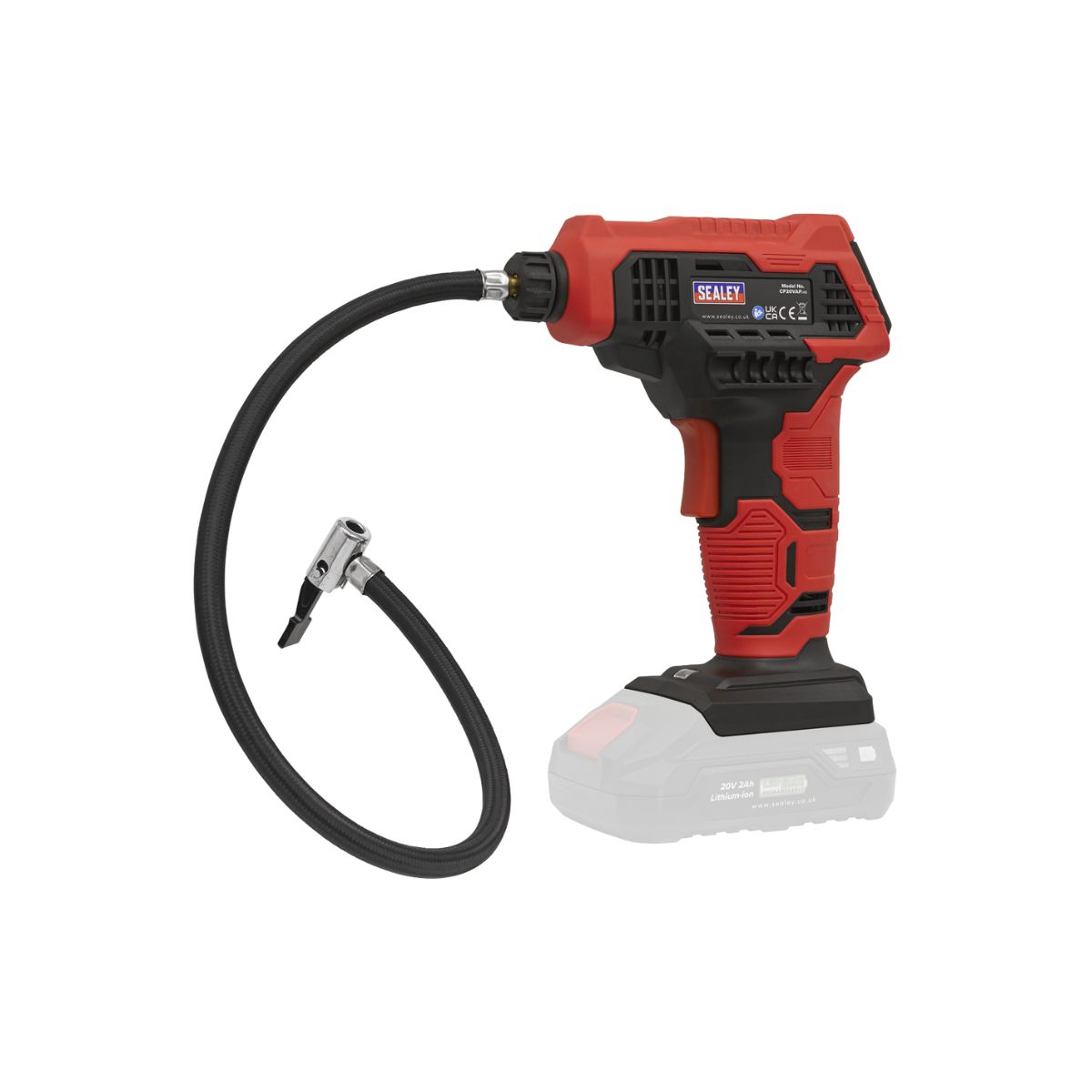 Акумулаторна помпа за гуми Sealey CP20VAP е част от серията SV20, която е проектирана за професионалисти, предоставяйки им тежки, високопроизводителни и издръжливи инструменти с лек композитен дизайн за превъзходен контрол и комфорт при работа. Тази ръчна помпа за гуми е снабдена с двойно инжекционно композитно тяло и гумени дръжки, което не само осигурява допълнителен комфорт, но и намалява вибрациите по време на употреба. Помпата разполага с две настройки за налягане – psi или bar, което я прави удобна и лесна за използване в различни ситуации. Автоматичното изключване при достигане на предварително избраното налягане и цифровият LED дисплей, предоставят ясна визуализация на текущото налягане.