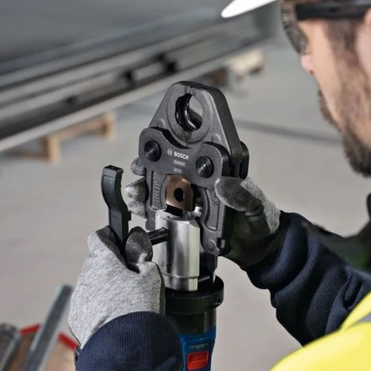 Акумулаторна преса за матрици и щанци Bosch GPT 18V-32 е високоефективна акумулаторна преса, подходяща за работа с пластмасови фитинги до 110 мм и метални до 54 мм, благодарение на силата на натиск от 34 kN. Пресова фитинги за под 5 секунди, а ротационната 360° глава осигурява удобство в тесни пространства. Ярката вградена лампа и LED индикатор предоставят отлично осветление и обратна връзка за статуса на пресоване. Устройството е съвместимо с пресови челюсти на Bosch и други одобрени системи, обхващащи различни диаметри. Работи с 18V професионалната система Bosch и универсалната батерия AMPShare, което осигурява универсалност и надеждност. Специалният защитен капак предпазва батерията по време на работа.