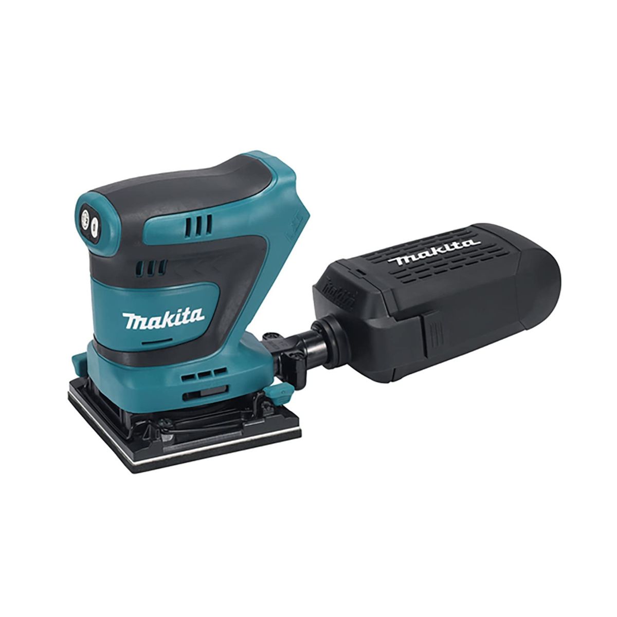 Акумулаторна шлифовъчна машина Makita DBO481Z е надежден инструмент, предназначен за различни приложения в шлайфането и обработката на повърхности. Основата на машината е изработена от здрава пластмаса, а подложката се закрепва лесно и сигурно благодарение на закопчалката тип кукичка. DBO481Z разполага с електронен контрол на скоростта с две настройки, което позволява на потребителя да регулира скоростта в зависимост от конкретното приложение. Оборудвана със система за събиране на прах, която поддържа работната зона чиста и предотвратява разпръскването на праха в околната среда. Смяната на шкурката е бързо и лесно, благодарение на скобата за хартия без нужда от допълнителни инструменти. Машината DBO481Z е проектирана, така че да осигури ниски вибрации при работа с натоварване, предоставяйки по-голям комфорт на оператора. Има дръжка, която осигурява висок комфорт по време на работа и подобрява контрола върху инструмента. Тя е идеална за грубо шлайфане на дърво и може да бъде свързана към прахосмукачка за по-ефективно събиране на праха.