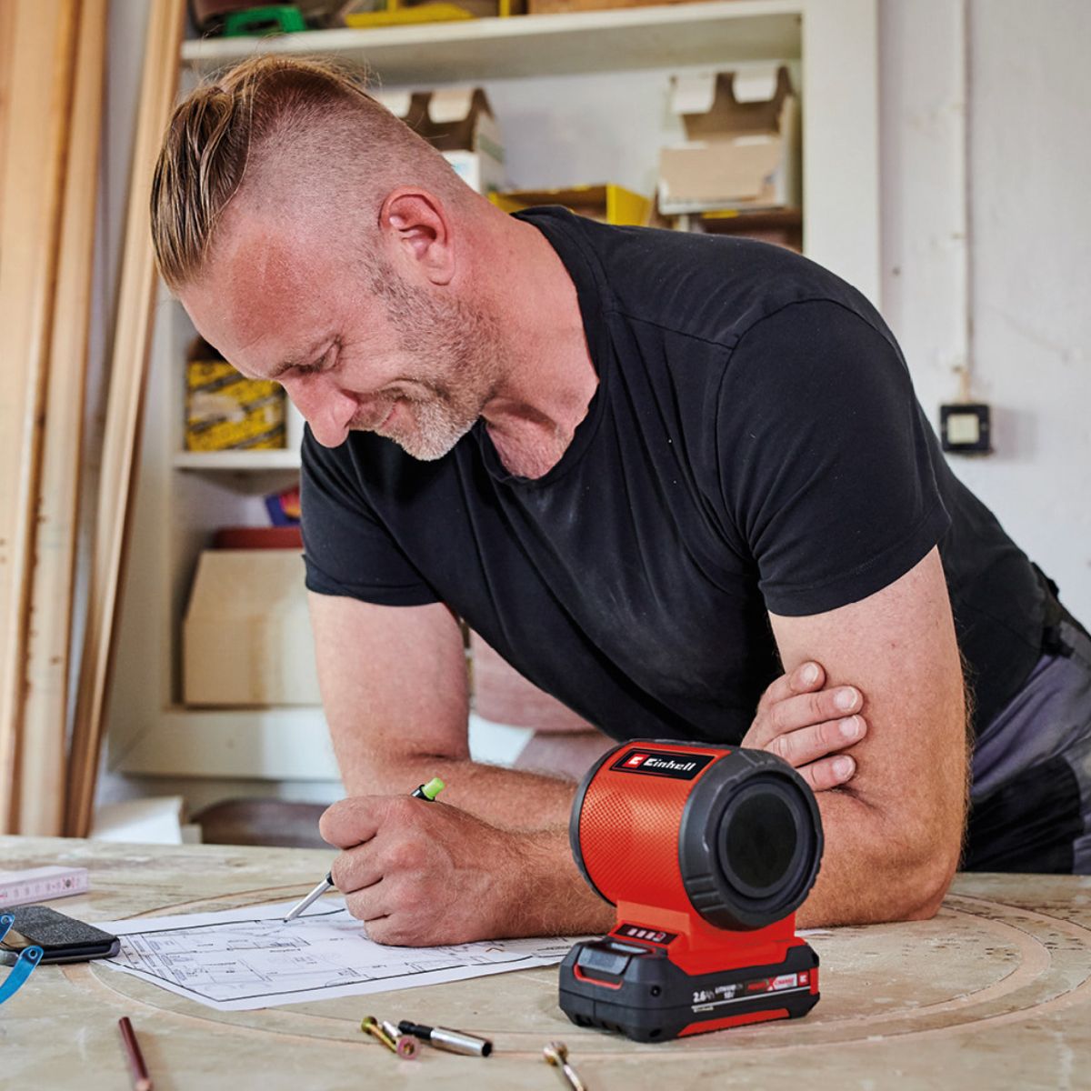 Акумулаторна тонколона Einhell TC-SR 18 Li BT – Solo се захранва с напрежение от 18 V и достига звукова мощност от 85 dB. Устройството предоставя лесна връзка чрез Bluetooth, което улеснява свързването с други устройства, като работният обхват на закрито е до 20 метра, а на открито – до 100 метра. Чрез AUX входа на тонколоната могат да бъдат свързани различни устройства като телефони, MP3 плейъри и таблети. Интуитивният контролен панел прави колонката изключително лесна за употреба, позволявайки на потребителя да контролира музикалните източници и звуковите настройки с лекота.