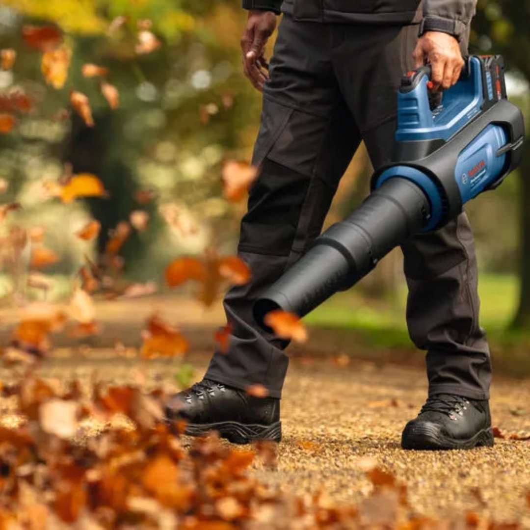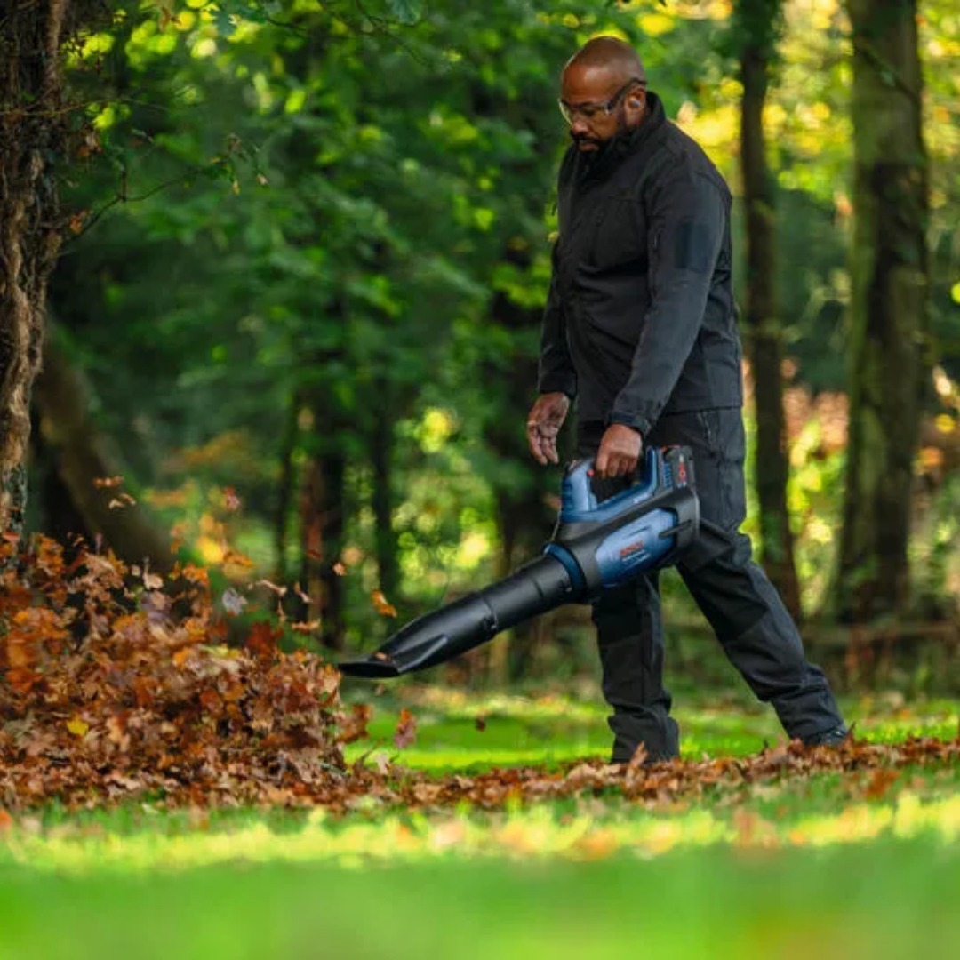 Акумулаторната въздуходувка Bosch GBL 18V-800 се захранва от 18 V батерия, предназначена за бързо почистване на сухи и влажни отпадъци около работната зона, двора и градината. Моделът е оборудван с безчетков мотор и развива въздушен дебит до 800 м³/ч, като скоростта на въздушната струя достига 200 км/ч. Предвидено е плавно управление на скоростта, както и възможност за застопоряване на спусъка при по-продължителна употреба.