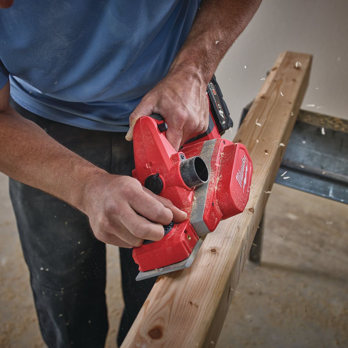 Акумулаторно ренде Milwaukee M18 BP-0 е високопроизводителен инструмент, създаден да отговори на нуждите на професионалистите в обработката на повърхности. Оборудвано с регулируема дълбочина на рязане от 0 до 2 мм и с двадесет позиции на заключване, то позволява прецизно задаване на количеството материал, което трябва да се отстрани с едно преминаване. С максимална дълбочина на врязване до 10.7 мм, този инструмент е подходящ за различни видове приложения, предлагайки гъвкавост и надеждност. С ширина на работа от 82 мм и два двустранни твърдосплавни ножа, рендето осигурява бързо и ефективно отнемане на материал, докато мощният 4-полюсен мотор предоставя скорост от 14,000 об./мин за оптимално качество на обработка. Допълнителните удобства включват възможност за изхвърляне на стружките както отляво, така и отдясно, което позволява на потребителя да държи работната зона чиста и безопасна. Удължената предна обувка на инструмента подпомага лесното и точно поставяне върху детайла, а стойката за удар, разположена на основата, защитава обработвания материал от случайни повреди. Рендето разполага с иновативна REDLINK™ електроника, която осигурява усъвършенствана защита от претоварване и гарантира дългосрочна издръжливост на батерията и инструмента. Съвместимо с всички батерии MILWAUKEE M18, това ренде предлага невероятна гъвкавост и възможност за дълготрайна работа при тежки натоварвания.