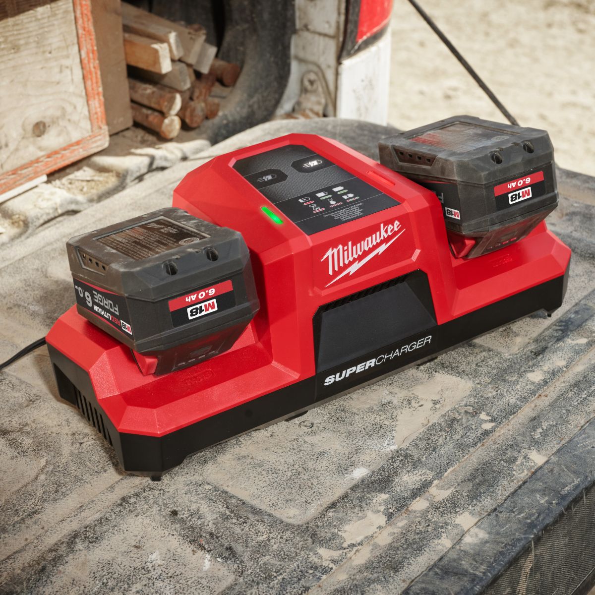 Бързо зарядно устройство Milwaukee M18 DBSC осигурява до 6 пъти по-бързо зареждане до 80% в сравнение със стандартните зарядни устройства, увеличавайки продуктивността. То може да зареди батерията M18™ REDLITHIUM™ FORGE™ 6,0 Ah до 80% само за 15 минути. Адаптивното разпределение на заряда осигурява едновременно зареждане на множество батерии за максимално увеличаване на продуктивността. С REDLINK™ интелигентност, зарядното устройство комуникира с батерията, за да осигури оптимизирана скорост на зареждане и производителност, като едновременно зарежда две батерии M18™. Съвместимо с всички батерии M18™ и предлага лесен монтаж на стена. Системата COOL-CYCLE™ осигурява активна охладителна система за високоскоростно охлаждане. Функцията за активно охлаждане работи с батерии, които поддържат COOL-CYCLE™.