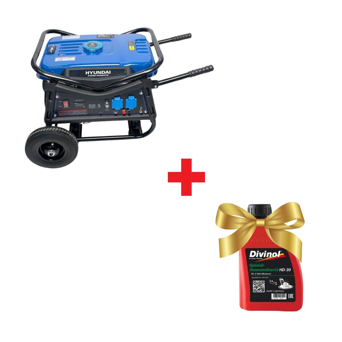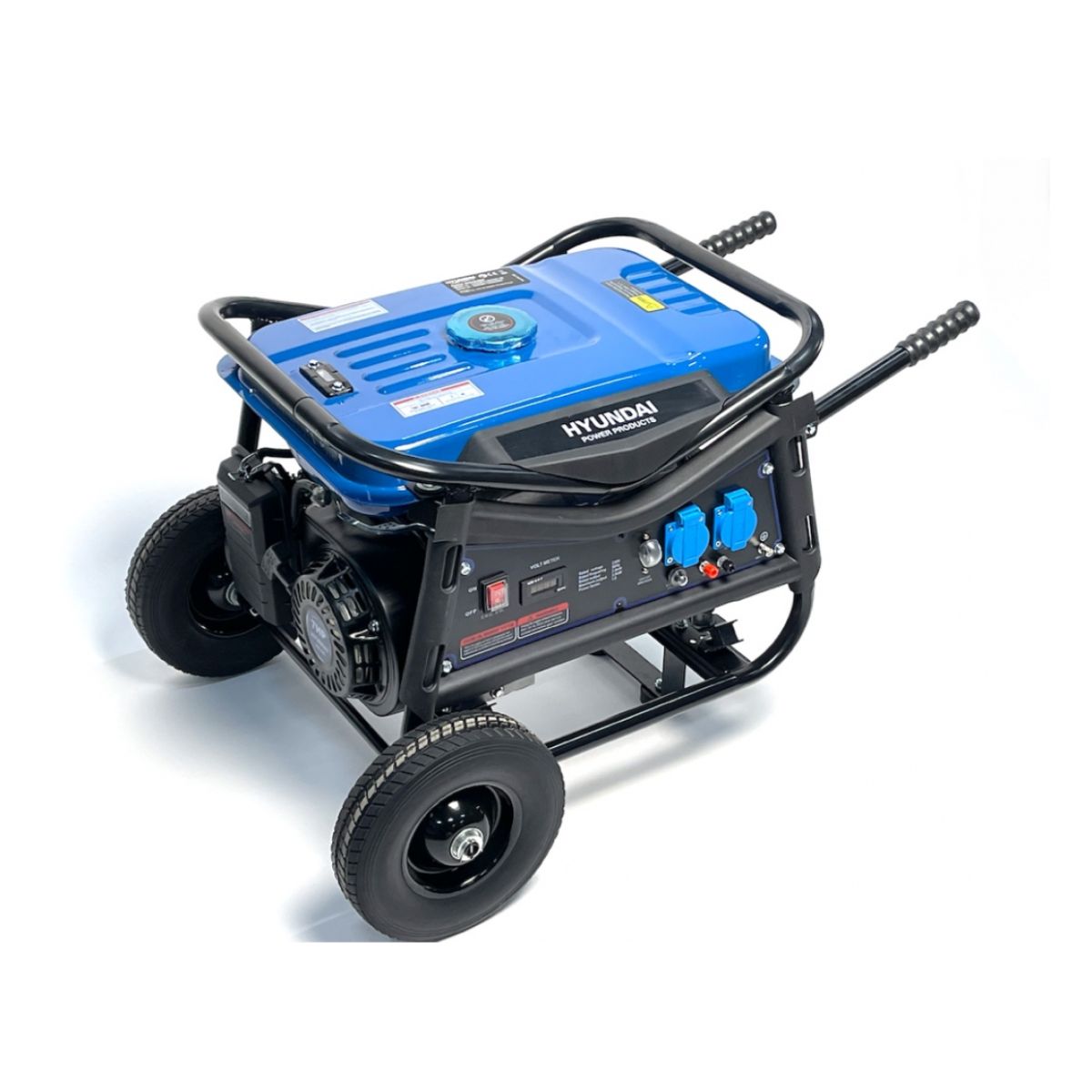 Бензинов генератор HYUNDAI 55059FF разполага с двигател OHV с въздушно охлаждане, предоставящ надеждна мощност. Вграденият автоматичен регулатор на напрежението (AVR) гарантира стабилен изход от 230 V в рамките на +/- 3%. Това позволява използването му както за електрически инструменти и осветление, така и за чувствително оборудване като компютри, лаптопи и мобилни телефони. Генераторът е оборудван с аларма за ниско ниво на масло, която автоматично спира двигателя, предотвратявайки сериозни повреди. Огромният ауспух помага за намаляване на шума, осигурявайки по-тиха работа. Големите гуми помагат за лесното транспортиране на машината. С минимални нужди от поддръжка и лесна употреба, този генератор е удобен и практичен избор.