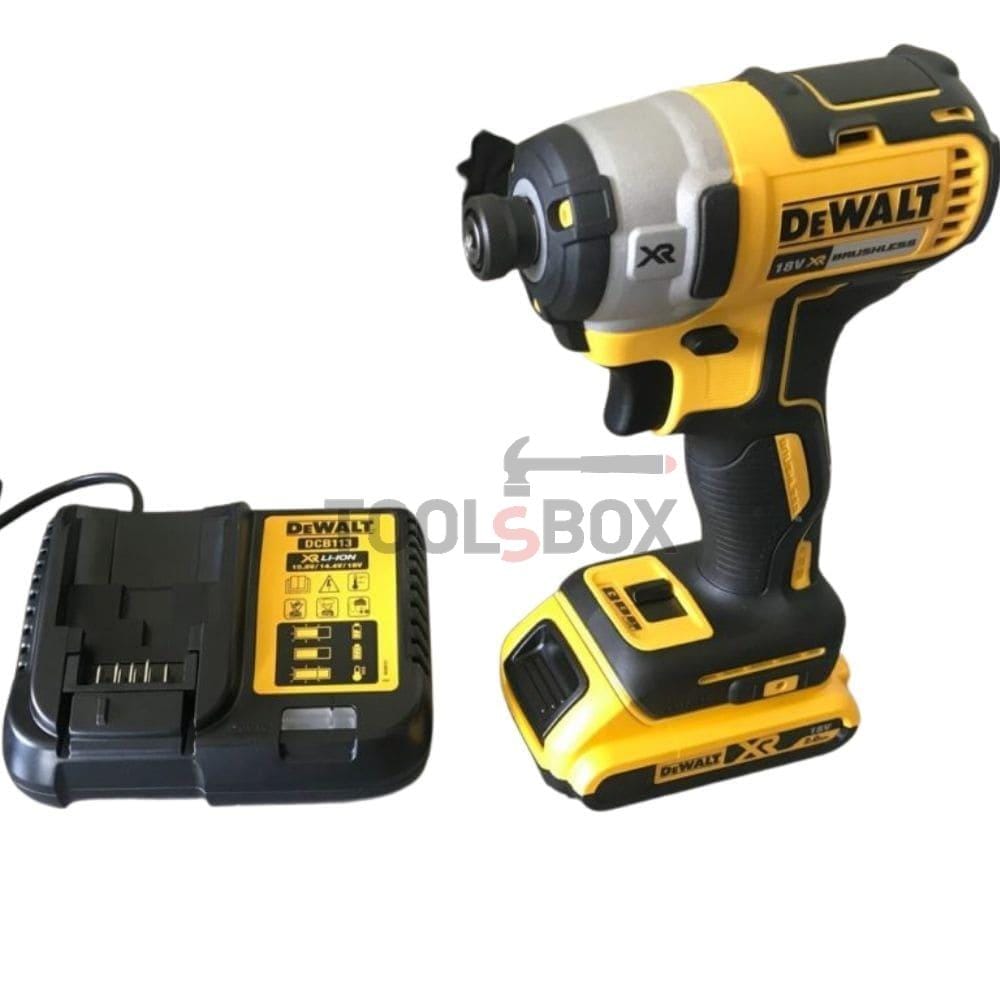 • DeWalt най-новото поколение импакт драйв 18V XR Li-Ion компактен винтоверт окомплектован с NEW поколение XR Li-Ion 2Ах батерия
