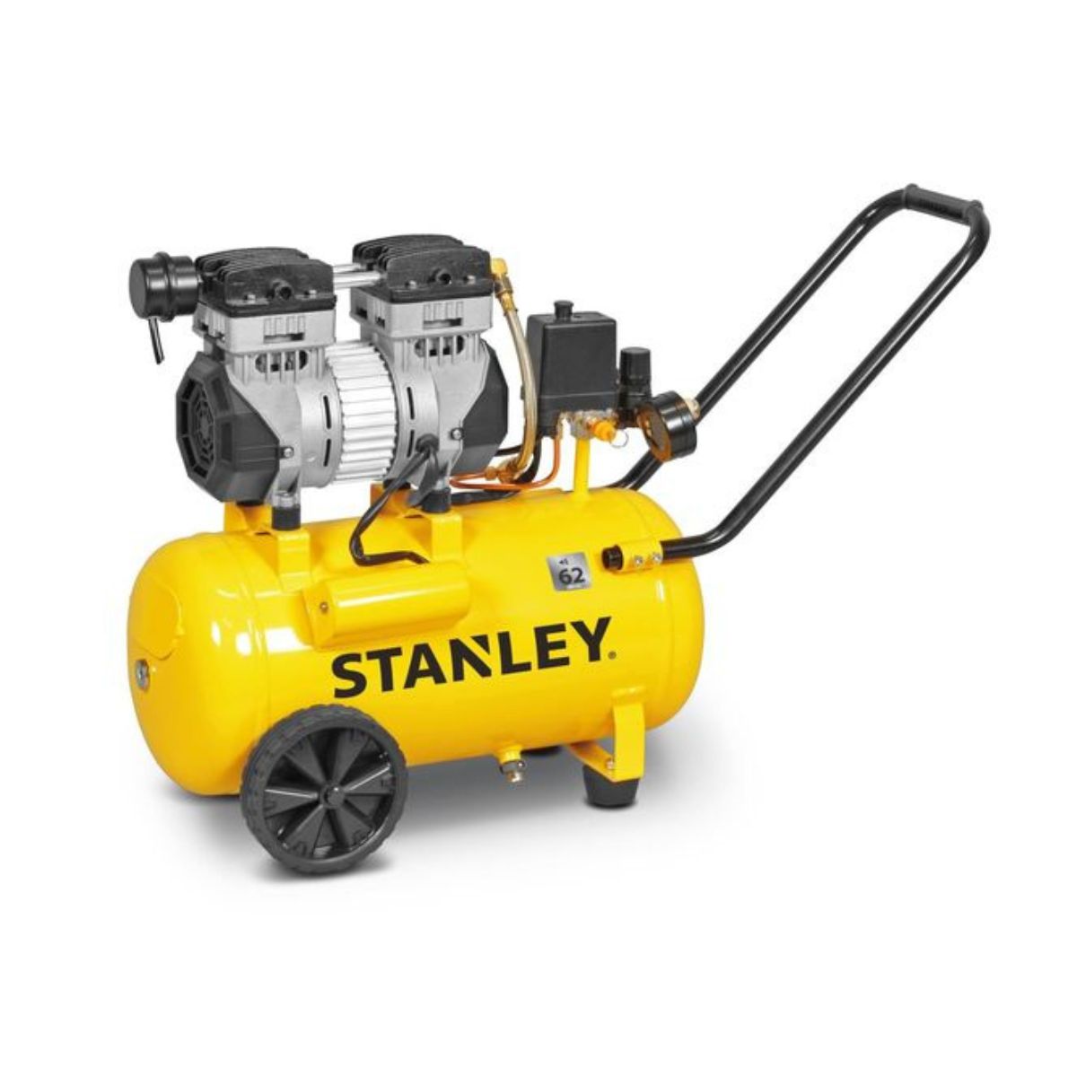 Безшумен компресор STANLEY SXCMS1324HE предлага мощност от 1000 W и разполага с внушителен въздушен дебит от 150 литра в минута. С максимално налягане от 8 бара и обем на резервоара от 24 литра, този компресор е подходящ за разнообразни приложения. Разполага вграден контролен панел, който включва два манометъра и регулатор на налягането. Електрическият двигател работи на обороти от 1450 на минута, осигурявайки надеждна и ефективна работа. Впечатляващата черта на този компресор е ниското ниво на шум, което гарантира повече комфорт, използвайки го на обществени мста. Големите колела и дръжката улесняват транспортирането на устройството, което го прави изключително преносим и удобен за работа по всяко време и на всяко място.