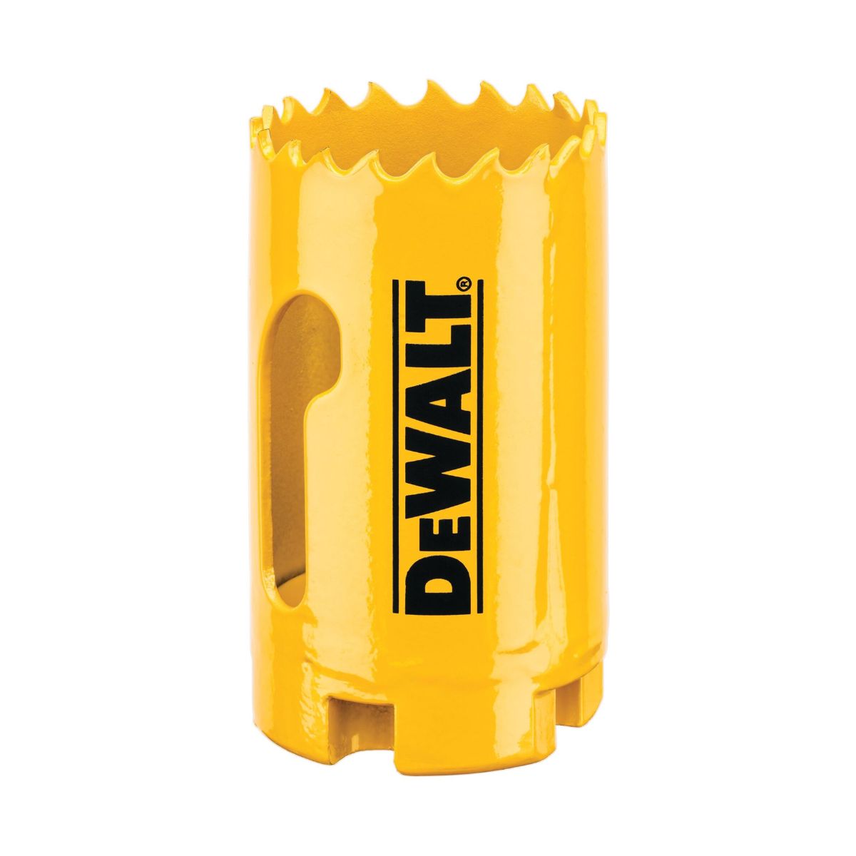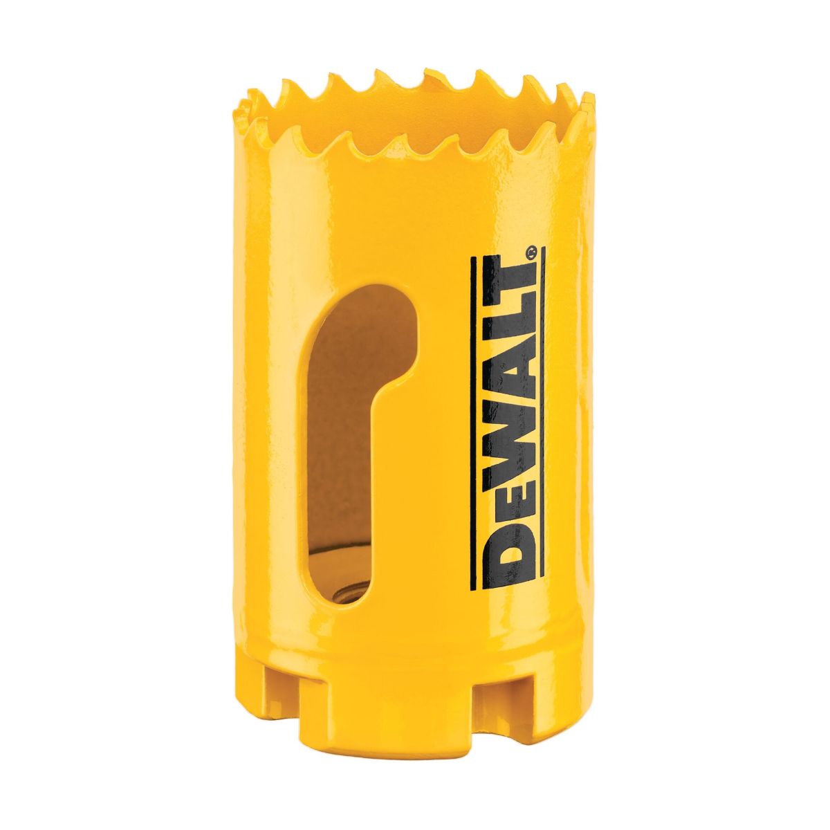 Боркороната на Dewalt е идеалена за пробиване на отвори в стомана, неръждаема стомана, месинг, мед, цинк, калай, алуминий, дървени материали, пластмаса и други състави. Втвърденият слой ToughCoat намалява повърхностното триене и топлината, като по този начин удължава живота на короната. Специално проектираната геометрия на зъбите осигурява високо чисто рязане без неравности. Дорникът с бързо освобождаване предотвратява застопоряването на боркорона върху дорника и позволява лесното му освобождаване.