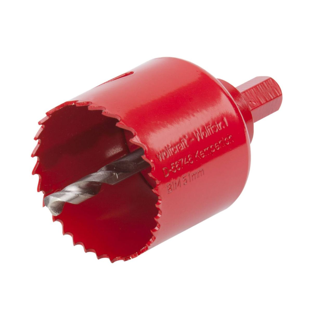 Биметална боркорона Wolfcraft 5471000 с диаметър 51 мм представлява универсален инструмент, предназначен за пробиване в различни видове материали и при разнообразни проекти. Със своята дълбочина на рязане от 40 мм, тази боркорона е идеална за работа с дърво, метал, пластмаса, панели за сухо строителство и изолационни панели като гипсокартон и OSB. Боркороната е проектирана с внимание към удобството на потребителя. Тя разполага със специално закалена, прецизна и износоустойчива дръжка, която предоставя стабилност при работа. Зъбите на боркороната са изработени от карбид и са термоустойчиви, което гарантира дълъг експлоатационен живот на инструмента. Със захват SDS-plus може лесно да бъде монтирана на стандартни акумулаторни винтоверти и бормашини с шестостенна опашка. Различните налични диаметри я правят подходяща за различни проекти в интериорен дизайн и метални конструкции. Прогресивно подредените разнотипни зъби осигуряват бърз и ефикасен напредък по време на пробиването, а включеното центриращо свредло ф 6 мм улеснява точното позициониране на отвора. Изхвърлянето на отпадъците става лесно чрез големите отвори. Сертифицирана е от TUV, което гарантира нейното качество и безопасност при работа.
