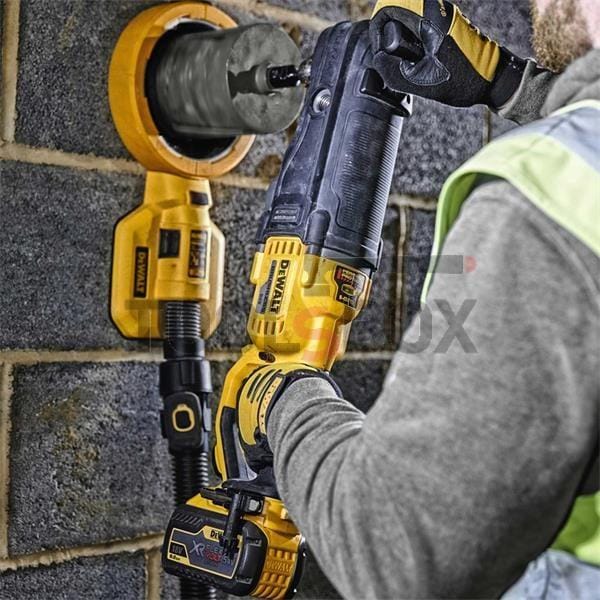 Перфектен за крайни потребители, който трябва да пробива отвори с голям диаметър. Тази тренировка под истински ъгъл е постигната специална сила, контрол, без удобство и време за работа с 54V безработен мотор. Електронното свързване предпазва потребителя от нараняването в обвързващи ситуации. Допълнителна информация за тази сила е да се проектира, за да се използва контрола на потребителя. В допълнение към интегрираната връзка, системата De-Walt срещу завършване на E-Clutch предлага технология, възможност за разположение на движението на инструментите. Тази функция винаги се движи на инструмента и го постига при необходимост. Светодиодният индикатор за светене, с който E-Clutch е включен.