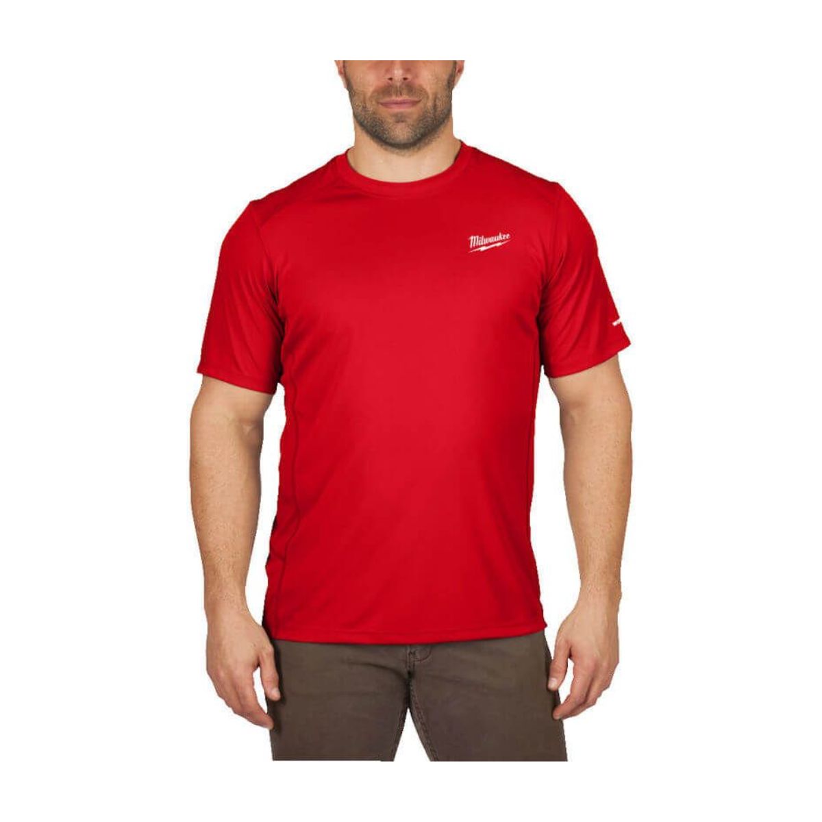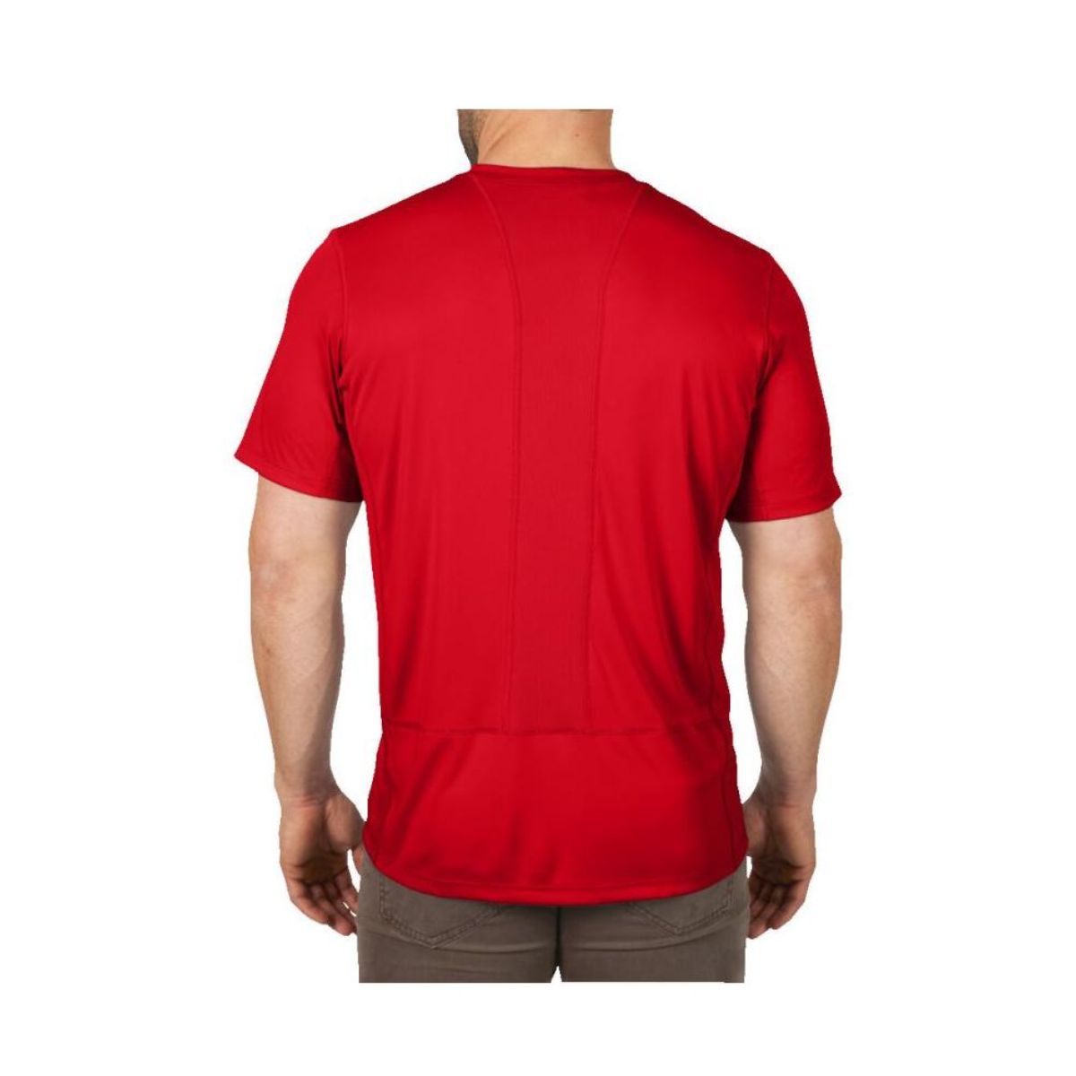 Червена тениска Milwaukee 4932493070 е идеална за работна среда при горещо време, благодарение на лекия си и дишащ дизайн. Изработена от 100% полиестер с влагоотвеждащ плат, тя осигурява комфорт през целия ден. Бързосъхнещата многослойна мрежеста материя в зоните с повишено изпотяване, като подмишниците, страничните части и гърба, осигурява отлична вентилация. Тениската е с UV защитен фактор UPF 50+ и отговаря на стандарта EN 13758-1, което я прави подходяща и за продължителна работа на открито.