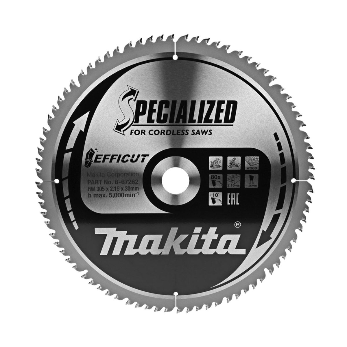 Циркулярен диск за дърво Makita B-67262 е идеален за фино рязане на иглолистна дървесина, плоскости за мебели и други дървени материали. С размери 305 x 30 x 2.15 мм и 80 зъба, този диск гарантира бързо и ефективно рязане благодарение на новия дизайн на зъбите с кух прорез, а карбидните пластини на зъбите гарантират висока издръжливост при рязане. Тефлоновото покритие предотвратява образуването на ръжда и залепването на материали, съдържащи лепило, осигурявайки дълготрайна издръжливост и висока производителност.