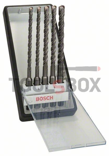 Свредла с твърдосплавни пластини SDS-plus-5 Bosch, за бетон с допълн. спирала ф 6.00- 10.00 мм, 5 бр комплект