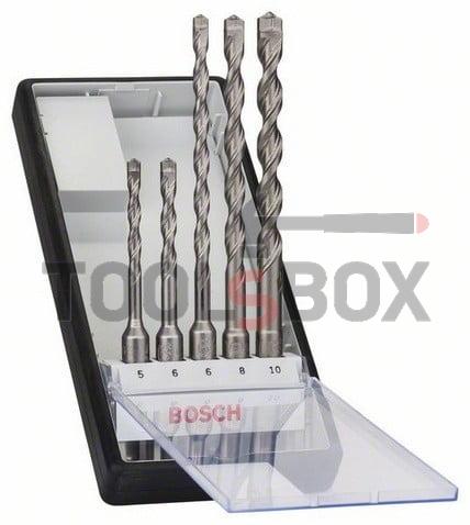 Свредла за бетон с твърдосплавни пластини със захват SDS Plus. Комплекта съдържа:ф 5; 6; 6; 8; 10мм