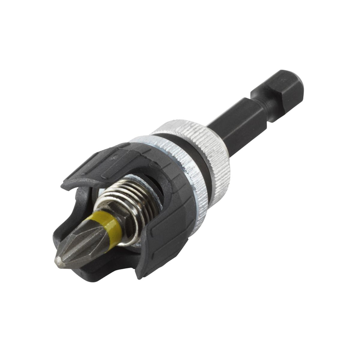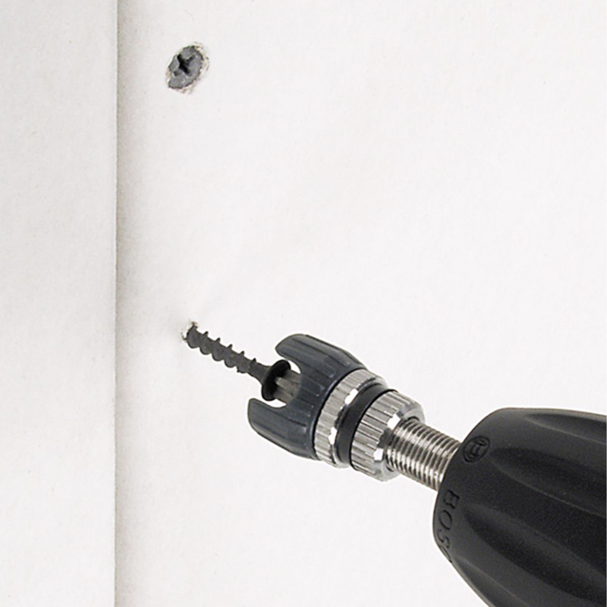 Държач за битове с дълбочинен ограничител Wolfcraft PH 2 представлява иновативен инструмент, създаден с цел да улесни и подобри процеса на завиване на винтове в различни типове гипскартонени конструкции. Този държач съчетава функционалност, практичност и точност, предоставяйки на потребителите възможността за лесно и прецизно закрепване на винтовете. Снабден с 1/4″ шестостенен захват, предоставяйки универсално решение за поставяне на различни видове битове. Предимство на държача е вграденият ограничител на дълбочината, които позволява на потребителя да настрои точната дълбочина. Разполага с патентована пластмасова капачка, която допринася за по-голямата удобност и ефективност при работа. Включен е и бит с PH 2 размер.