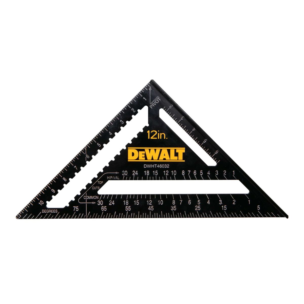 Дърводелски триъгълник Dewalt DWHT46032 е изработен от издръжлив алуминий, предлагащ надеждност и точност при различни приложения. С вградените скали в инчове, градуси и Hip/Val, той предоставя бърз достъп до точни измервания за всякакви строителни проекти. Триъгълникът разполага с фиксирана голяма основа, което осигурява стабилност и по-добро сцепление с материалите. Дебелият корпус от екструдиран алуминий гарантира дълготрайна издръжливост при интензивна употреба. Освен това, той може да се използва и като водач на трион, което го прави многофункционален инструмент.