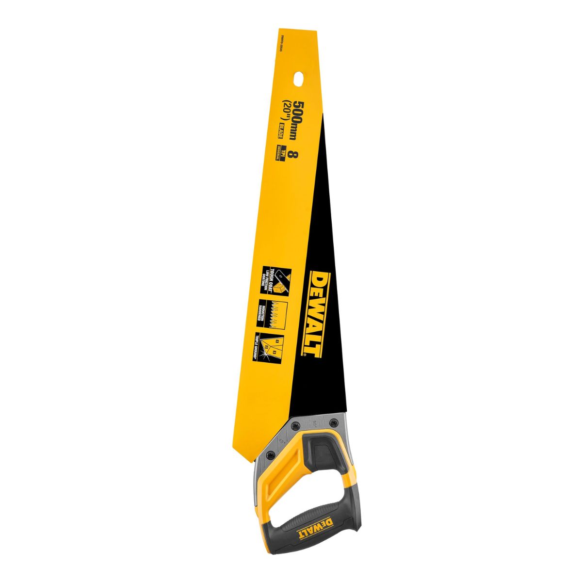 Дърводелски трион със закалени зъби DeWALT DWHT0-20545 е изработен от висококачествена стомана, която гарантира висока устойчивост и надеждност при работа. Трионът има закалени зъби, което го прави подходящ за рязане на твърди и плътни дървени материали, като например дървени плочи, дъски и профили. Закалените зъби осигуряват по-бързо срязване на материала, а зъбите остават остри за по-дълго време. Трионът има дължина на острието от 500 мм, което го прави подходящ за рязане на големи и тежки дървени материали. Благодарение на ToughCoat™, трионът предлага покритие с по-ниско триене за по-малко съпротивлние.