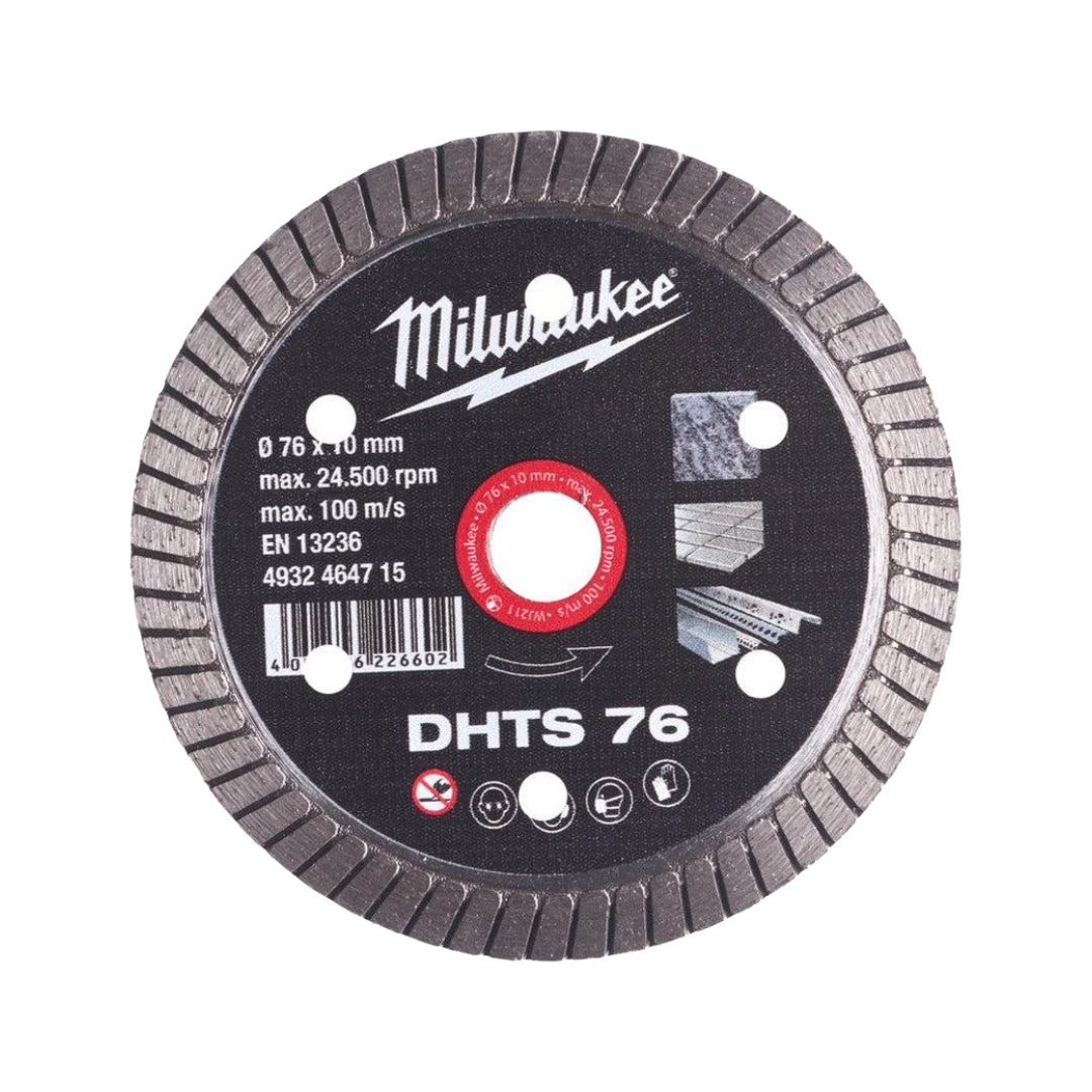 Диамантен диск Milwaukee 4932464715 е проектиран за изключително бързо и прецизно рязане на меки и твърди плочки, фин гранитогрес, както и естествени и изкуствени камъни. Турбо сегментът в комбинация с ултратънкото тяло осигурява висока скорост на рязане, отличен контрол и изключително чисти срезове. Дискът генерира по-малко прах по време на работа, което подобрява видимостта и комфорта при рязане, правейки го надежден избор за професионални довършителни и монтажни дейности.