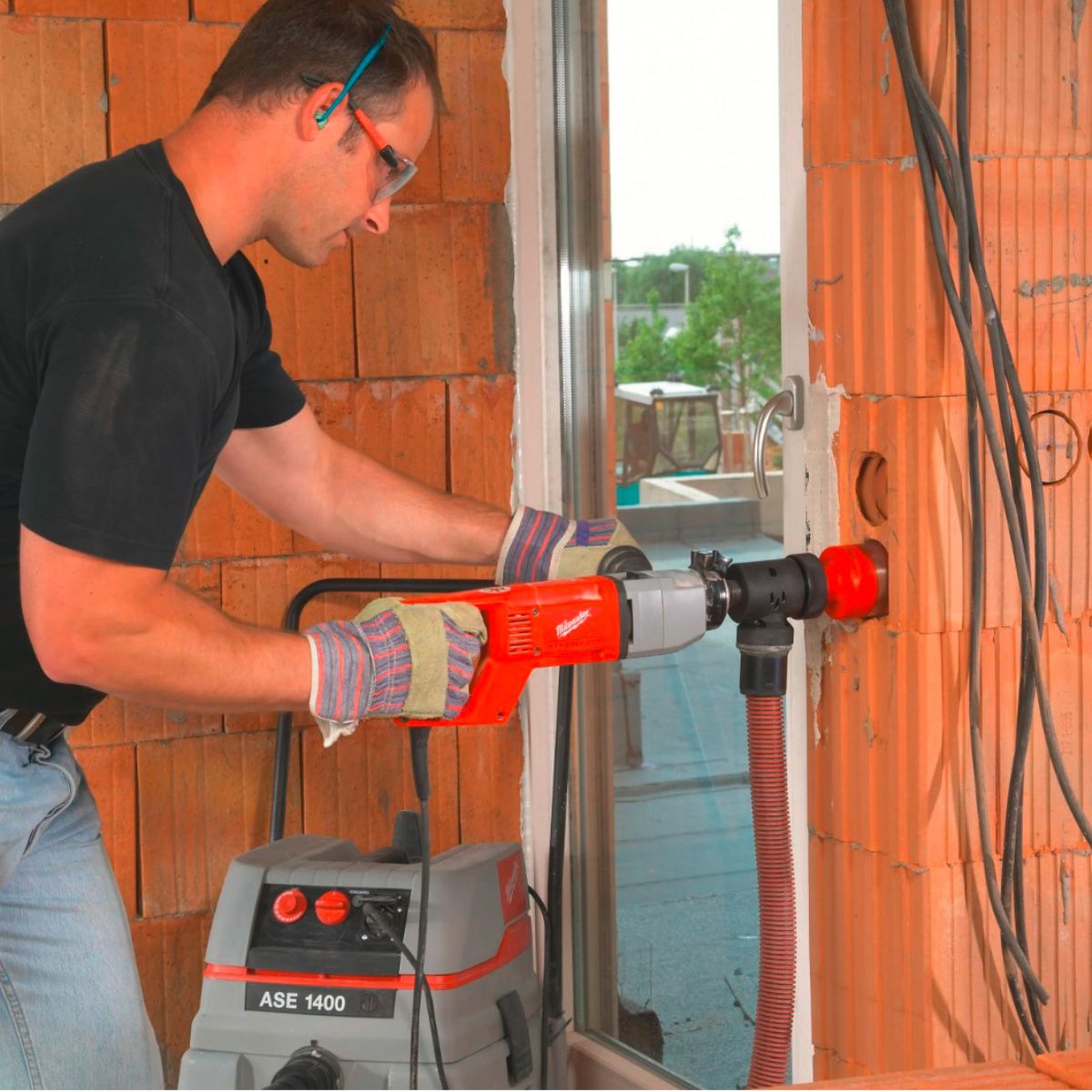 Диамантено-пробивна машина Milwaukee DD 2-160 XE е професионален инструмент с мощен мотор, който доставя постоянен висок въртящ момент за безпроблемна работа дори при най-тежки условия. Двойната защитна система съчетава механичен и електронен съединител, които работят заедно за максимална безопасност на оператора и предпазване на машината от претоварване. Скоростната кутия е изработена изцяло от метал, което гарантира здравина и дълга експлоатация при интензивна употреба. Ергономичната D-образна основна ръкохватка и дългата странична ръкохватка с антивибрационна система (AVS) осигуряват комфорт и точен контрол при продължителна работа. Специалният M16 FIXTEC адаптер позволява бърза смяна на диамантените боркорони без инструменти. Двустепенната скоростна кутия дава възможност за избор на подходяща скорост според материала и размера на отвора. Функцията за плавен старт осигурява прецизно начало на пробиването, а режимът мек удар помага за по-бързо и лесно прорязване на материала. Четириметровият кабел предоставя достатъчна свобода на движение без нужда от удължители. Машината е съвместима с адаптор за прахоулавяне FIXTEC Cleanline за чиста работна среда.